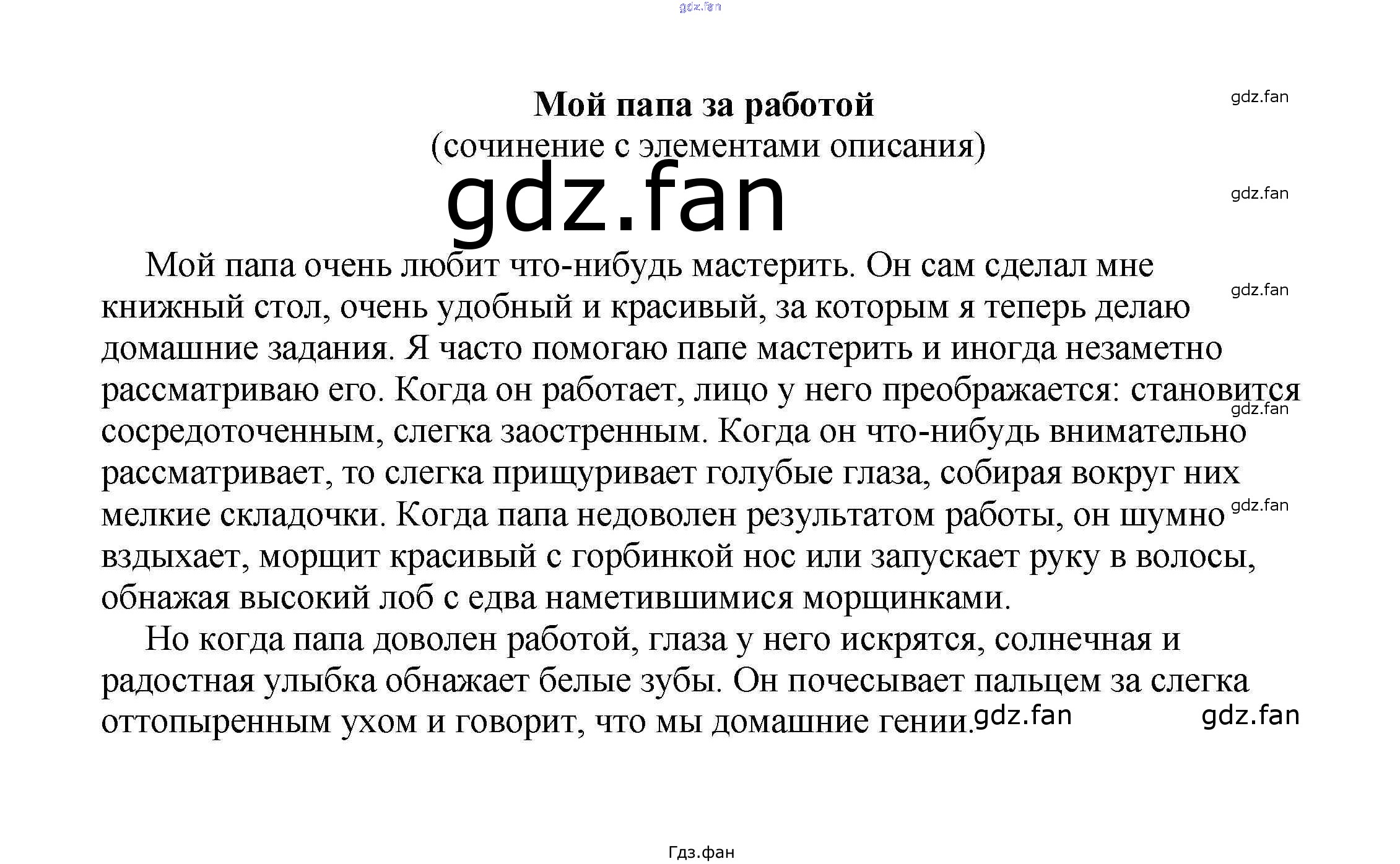 Проверка домашнего задания всегда занимает большое количество времени. На помощь приходит ГДЗ фан по Литературе пятого класса. Здесь собраны популярные ответы на Мой папа за работой (сочинение с элементами описания) Сочинения по русской литературе, зарубежной литературе 5-10 классы Белик Э. В.