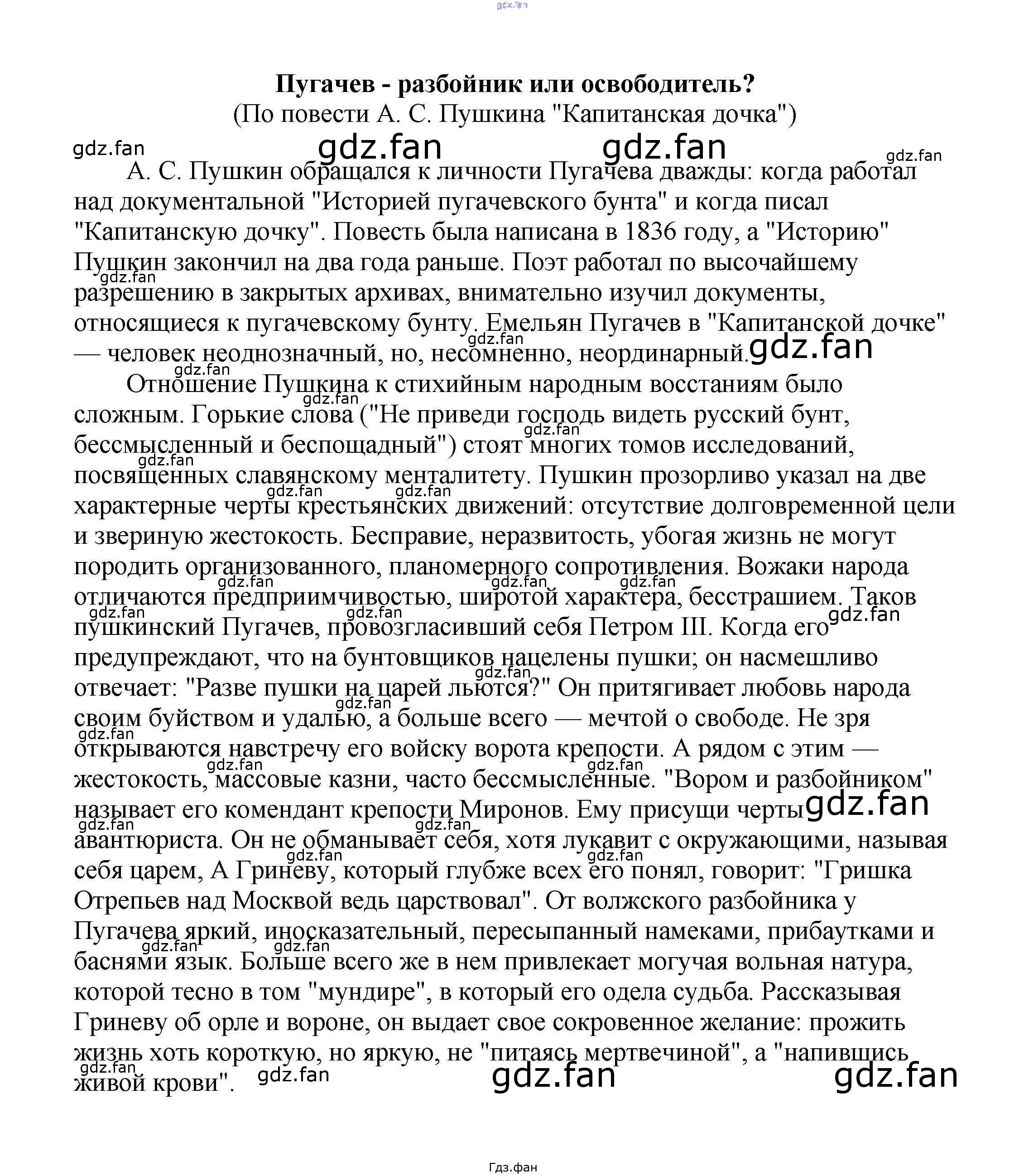 Проверка домашнего задания всегда занимает большое количество времени. На помощь приходит ГДЗ фан по Литературе пятого класса. Здесь собраны популярные ответы на Пугачев - разбойник или освободитель? (По повести А. С. Пушкина "Капитанская дочка") Сочинения по русской литературе, зарубежной литературе 5-10 классы Белик Э. В.