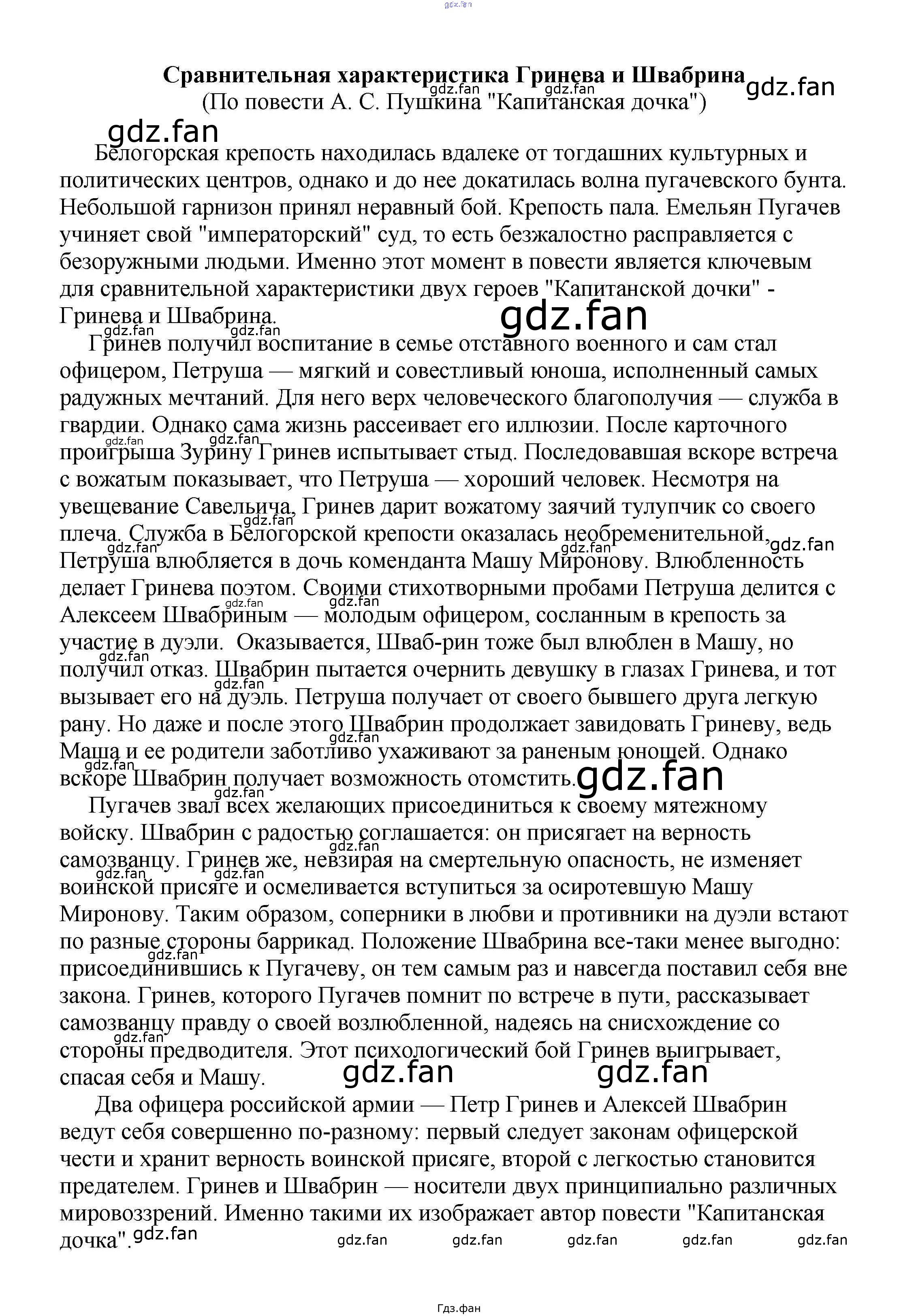 Проверка домашнего задания всегда занимает большое количество времени. На помощь приходит ГДЗ фан по Литературе пятого класса. Здесь собраны популярные ответы на Сравнительная характеристика Гринева и Швабрина (По повести А. С. Пушкина "Капитанская дочка") Сочинения по русской литературе, зарубежной литературе 5-10 классы Белик Э. В.