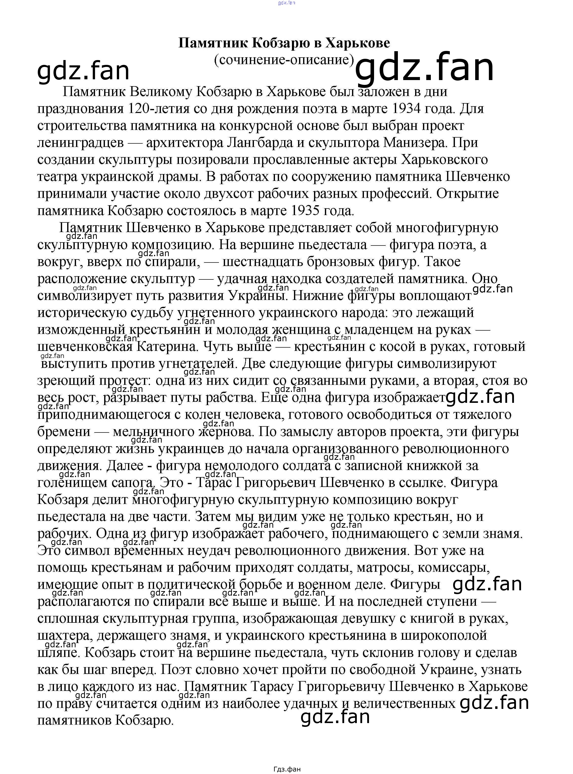 Проверка домашнего задания всегда занимает большое количество времени. На помощь приходит ГДЗ фан по Литературе пятого класса. Здесь собраны популярные ответы на Памятник Кобзарю в Харькове (сочинение-описание) Сочинения по русской литературе, зарубежной литературе 5-10 классы Белик Э. В.