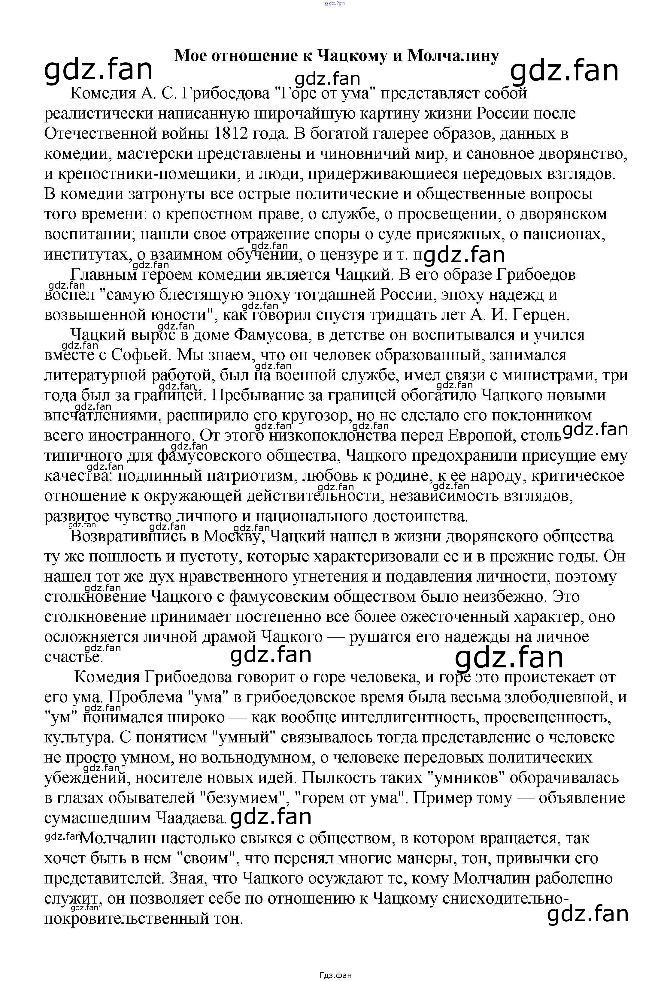 Проверка домашнего задания всегда занимает большое количество времени. На помощь приходит ГДЗ фан по Литературе пятого класса. Здесь собраны популярные ответы на Мое отношение к Чацкому и Молчалину Сочинения по русской литературе, зарубежной литературе 5-10 классы Белик Э. В.