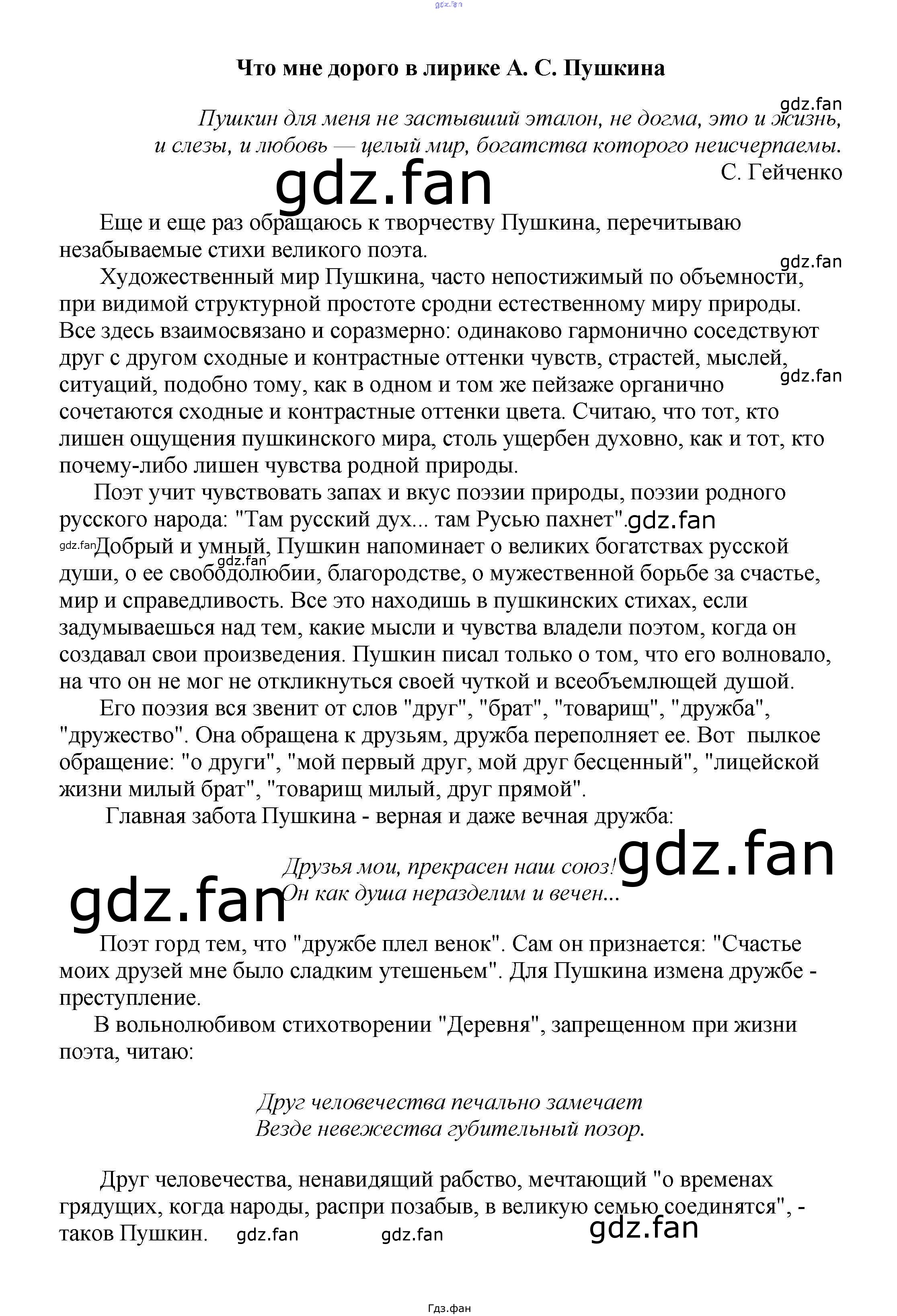Проверка домашнего задания всегда занимает большое количество времени. На помощь приходит ГДЗ фан по Литературе пятого класса. Здесь собраны популярные ответы на Что мне дорого в лирике А. С. Пушкина Сочинения по русской литературе, зарубежной литературе 5-10 классы Белик Э. В.