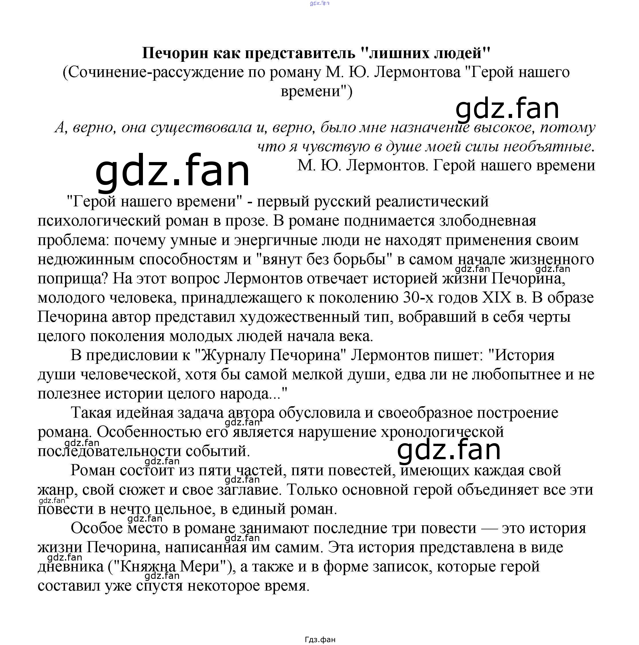 Проверка домашнего задания всегда занимает большое количество времени. На помощь приходит ГДЗ фан по Литературе пятого класса. Здесь собраны популярные ответы на Печорин как представитель "лишних людей" (Сочинение-рассуждение по роману М. Ю. Лермонтова "Герой нашего времени") Сочинения по русской литературе, зарубежной литературе 5-10 классы Белик Э. В.
