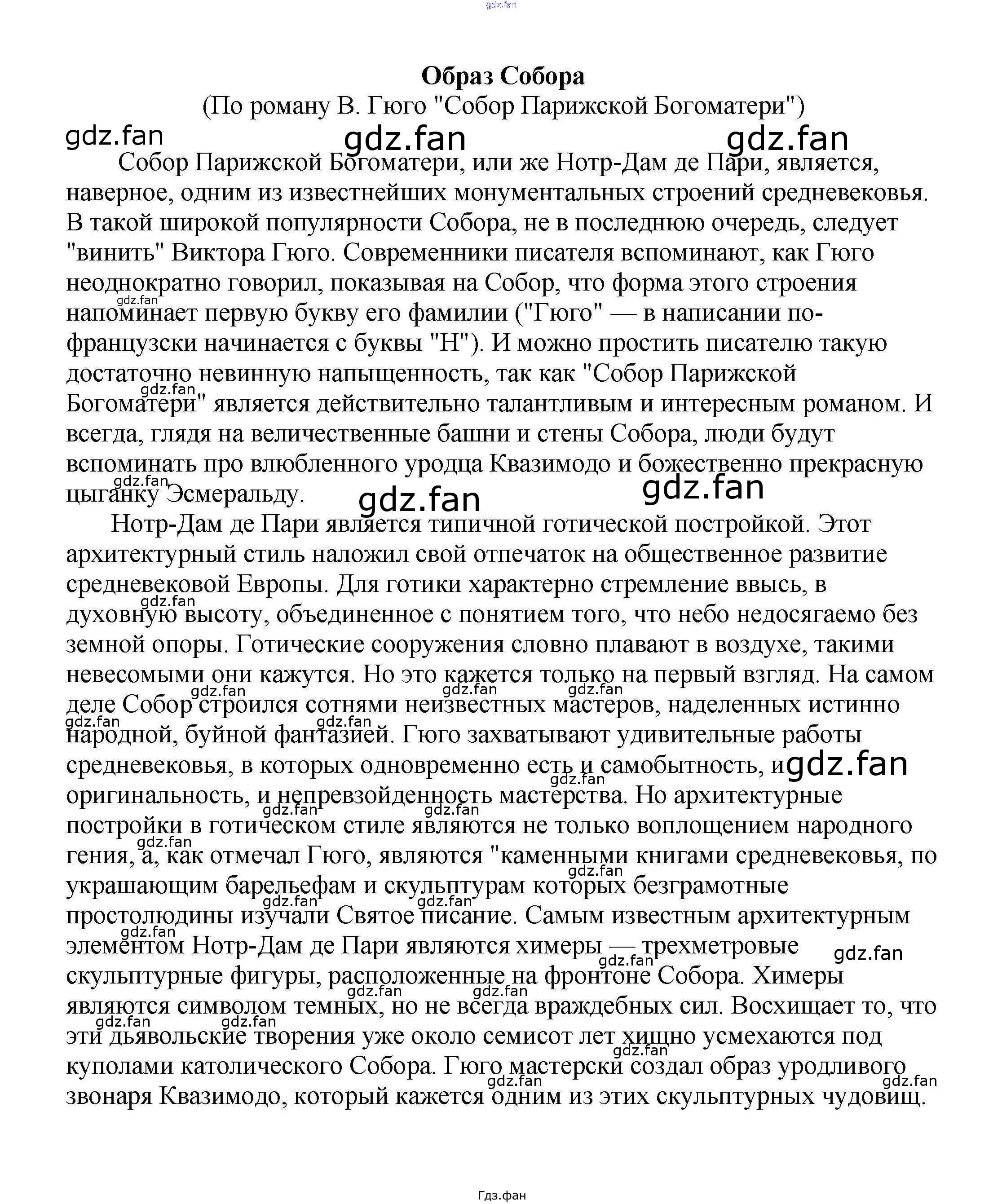 Проверка домашнего задания всегда занимает большое количество времени. На помощь приходит ГДЗ фан по Литературе пятого класса. Здесь собраны популярные ответы на Образ Собора (По роману В. Гюго "Собор Парижской Богоматери") Сочинения по русской литературе, зарубежной литературе 5-10 классы Белик Э. В.