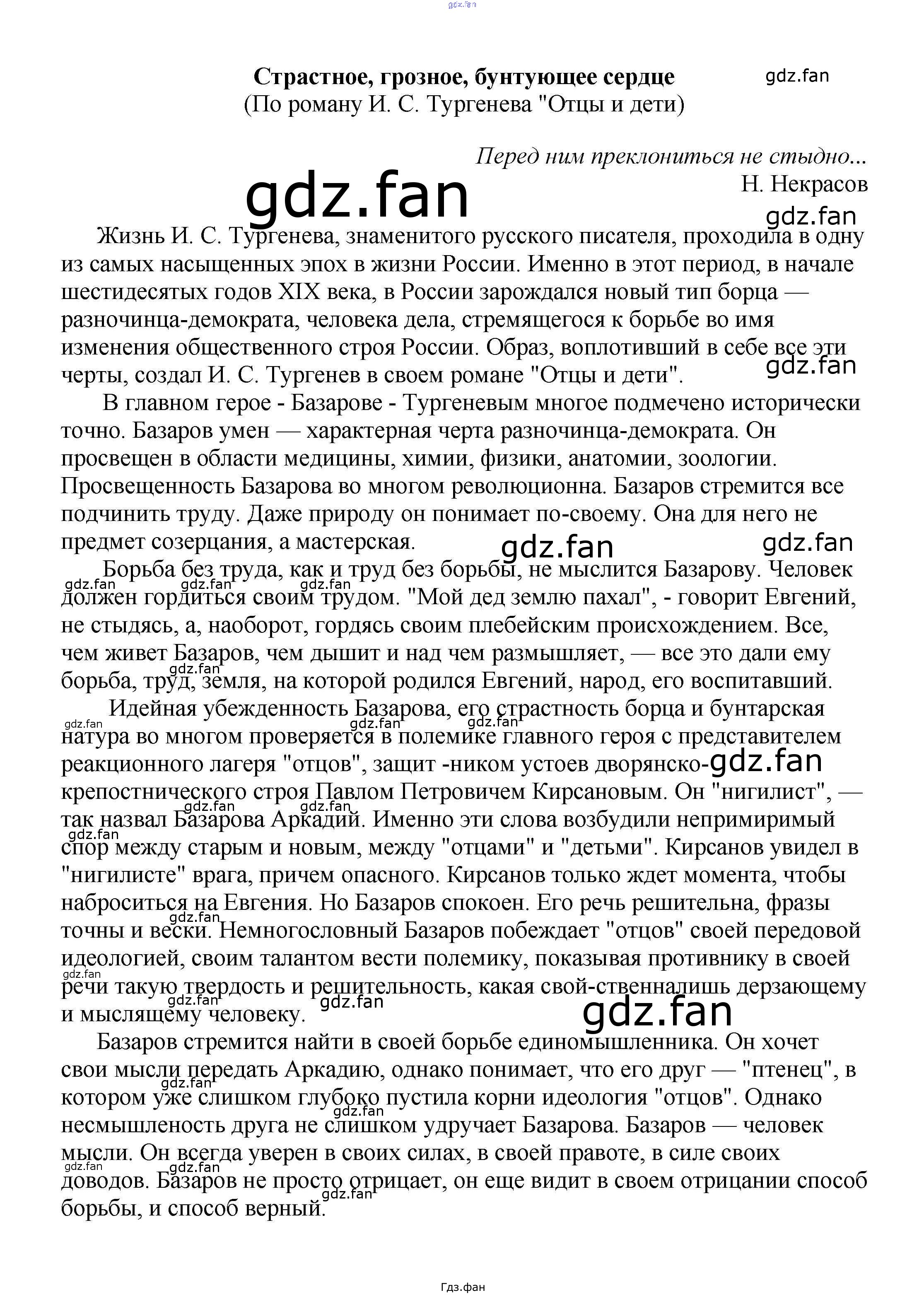 Проверка домашнего задания всегда занимает большое количество времени. На помощь приходит ГДЗ фан по Литературе пятого класса. Здесь собраны популярные ответы на Страстное, грозное, бунтующее сердце (По роману И. С. Тургенева "Отцы и дети) Сочинения по русской литературе, зарубежной литературе 5-10 классы Белик Э. В.