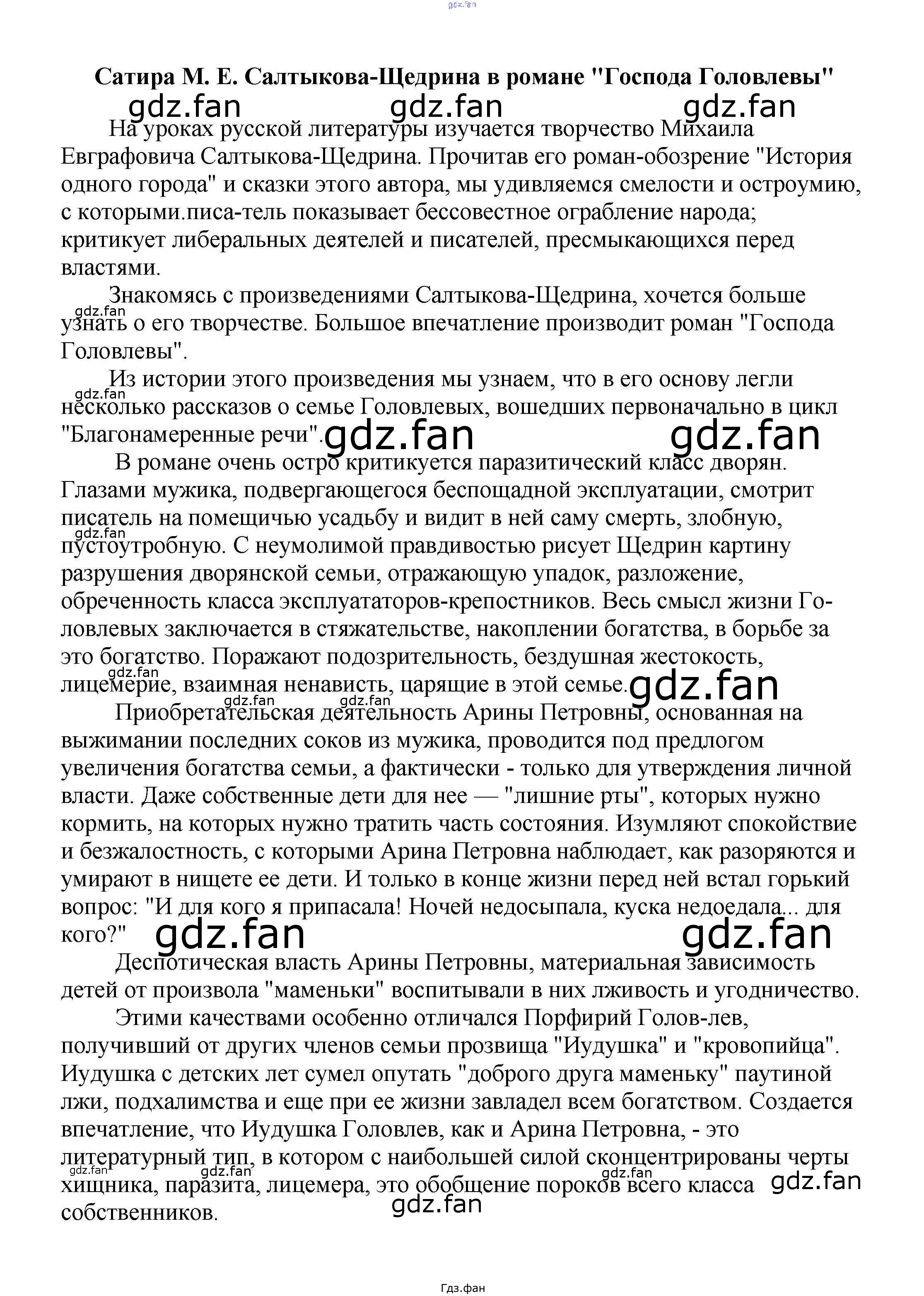 Проверка домашнего задания всегда занимает большое количество времени. На помощь приходит ГДЗ фан по Литературе пятого класса. Здесь собраны популярные ответы на Сатира М. Е. Салтыкова-Щедрина в романе "Господа Головлевы" Сочинения по русской литературе, зарубежной литературе 5-10 классы Белик Э. В.