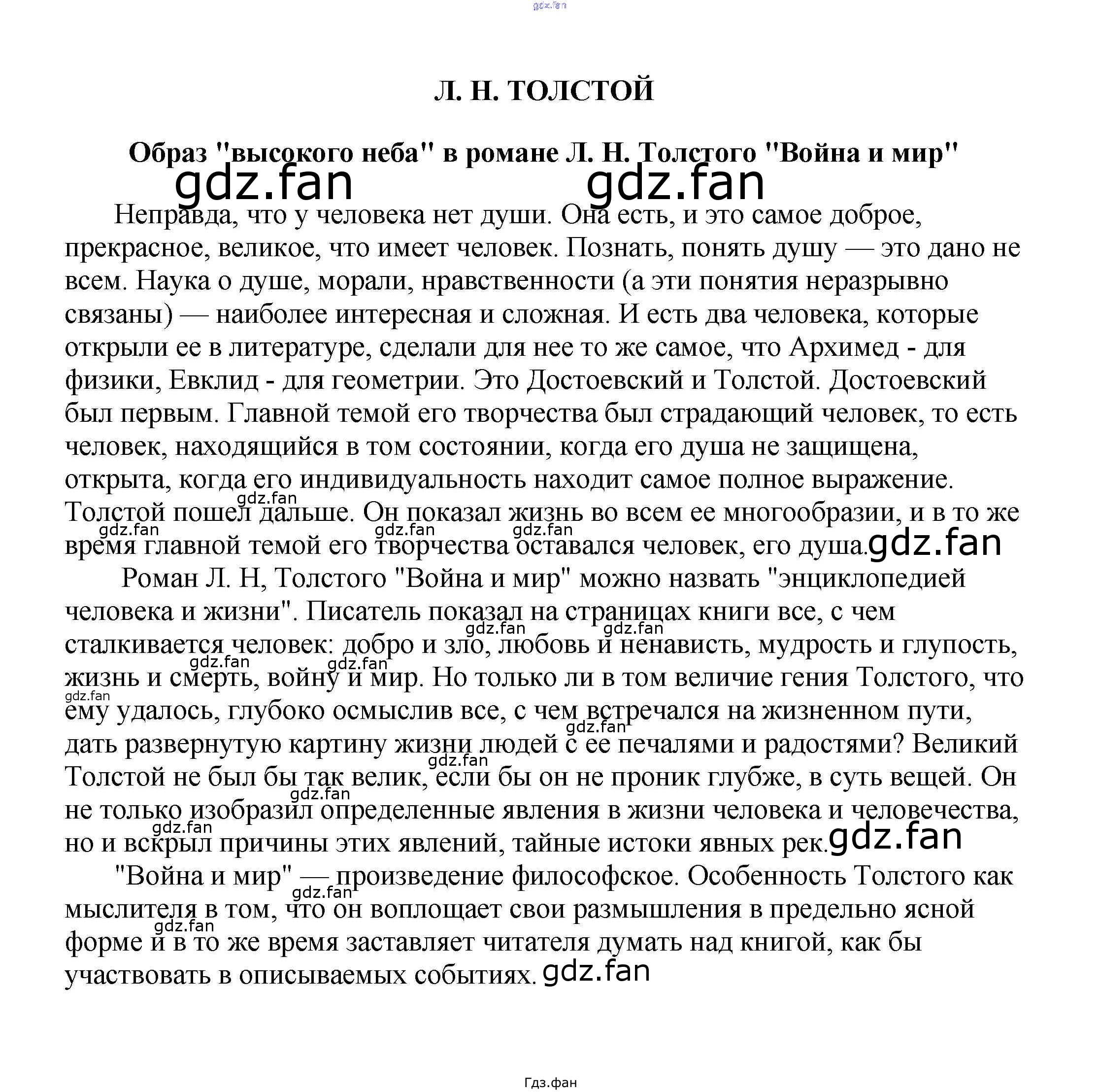 Проверка домашнего задания всегда занимает большое количество времени. На помощь приходит ГДЗ фан по Литературе пятого класса. Здесь собраны популярные ответы на Образ "высокого неба" в романе Л. Н. Толстого "Война и мир" Сочинения по русской литературе, зарубежной литературе 5-10 классы Белик Э. В.
