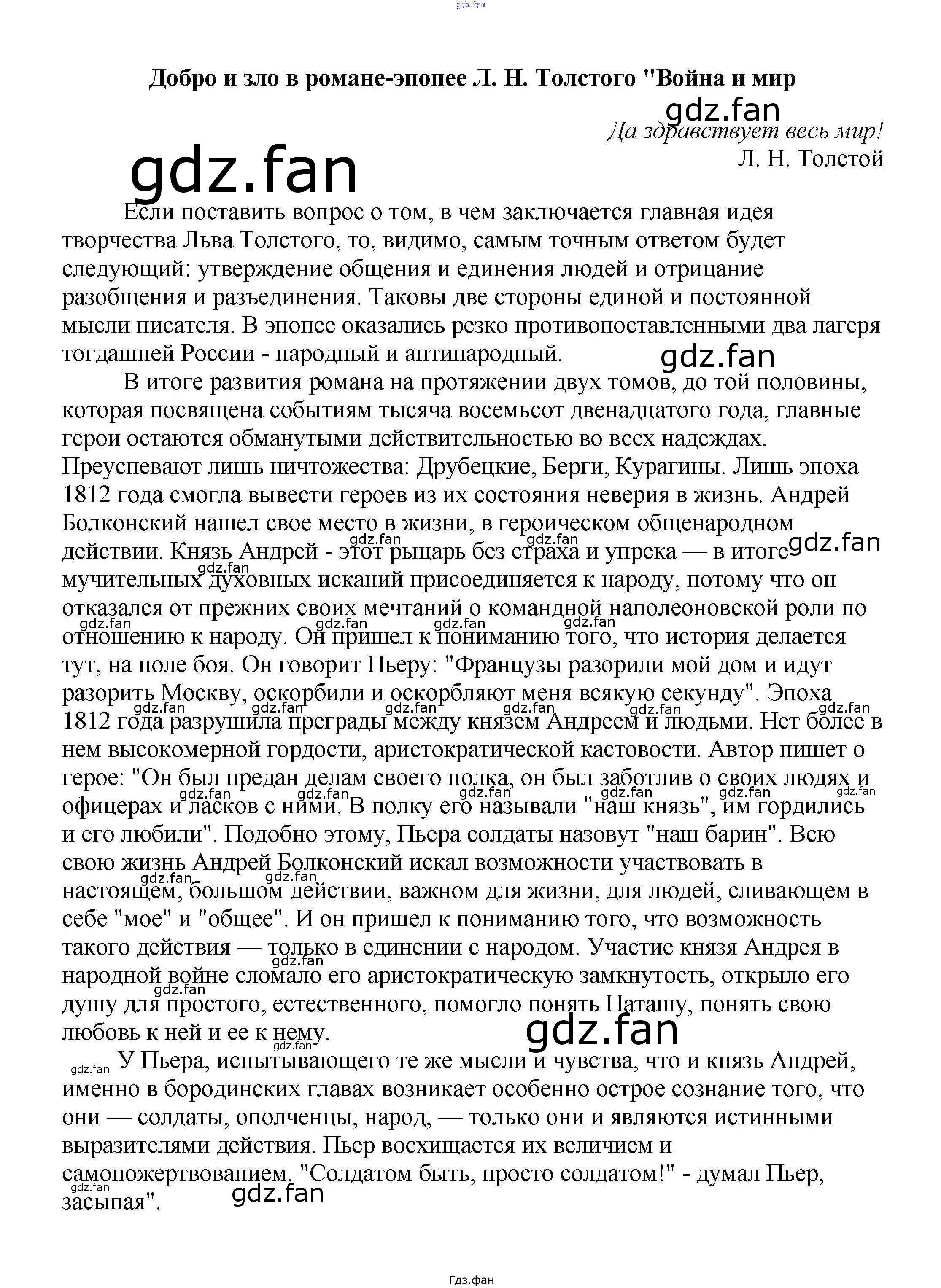 Проверка домашнего задания всегда занимает большое количество времени. На помощь приходит ГДЗ фан по Литературе пятого класса. Здесь собраны популярные ответы на Добро и зло в романе-эпопее Л. Н. Толстого "Война и мир Сочинения по русской литературе, зарубежной литературе 5-10 классы Белик Э. В.