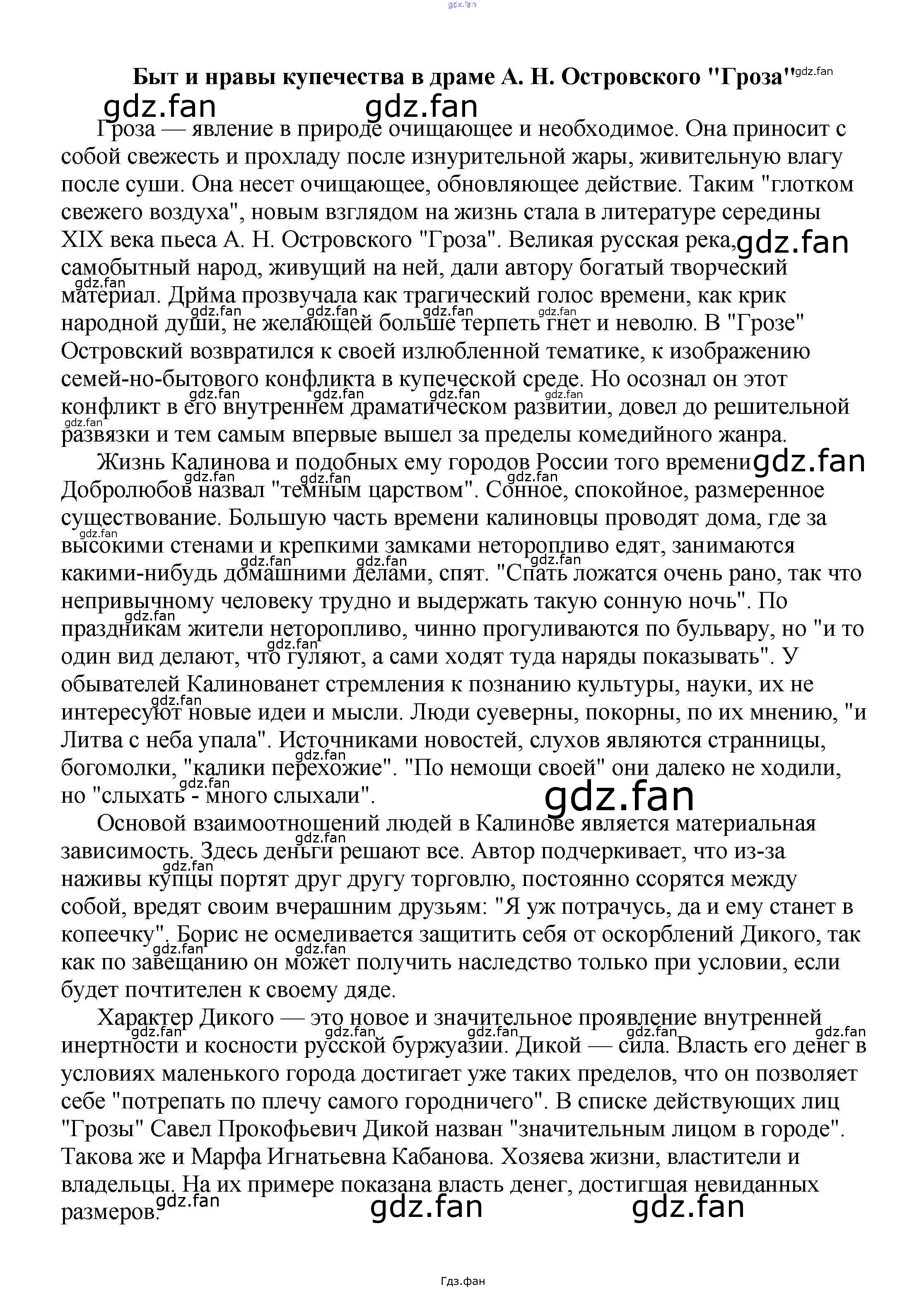 Проверка домашнего задания всегда занимает большое количество времени. На помощь приходит ГДЗ фан по Литературе пятого класса. Здесь собраны популярные ответы на Быт и нравы купечества в драме А. Н. Островского "Гроза" Сочинения по русской литературе, зарубежной литературе 5-10 классы Белик Э. В.