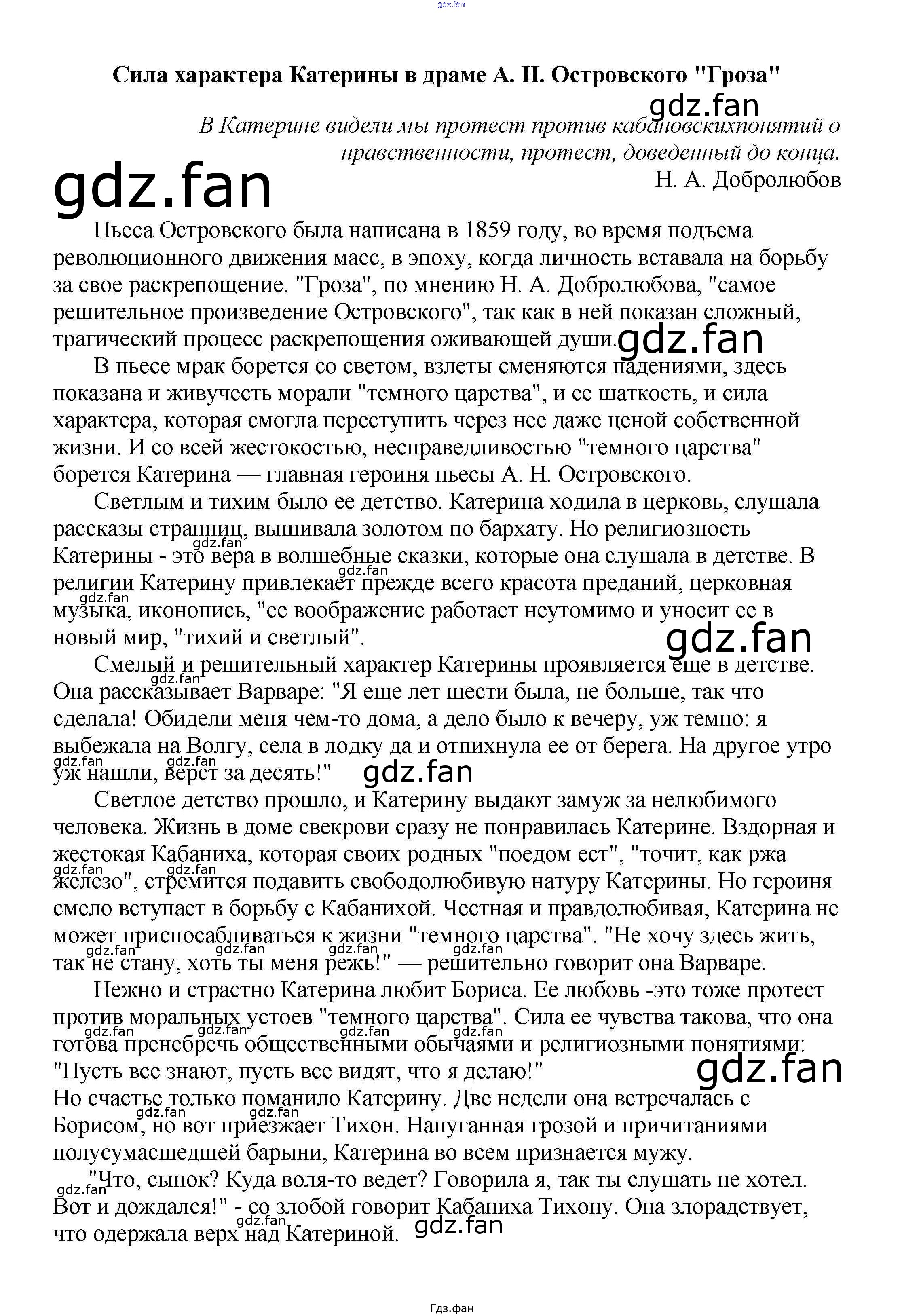 Проверка домашнего задания всегда занимает большое количество времени. На помощь приходит ГДЗ фан по Литературе пятого класса. Здесь собраны популярные ответы на Сила характера Катерины в драме А. Н. Островского "Гроза" Сочинения по русской литературе, зарубежной литературе 5-10 классы Белик Э. В.