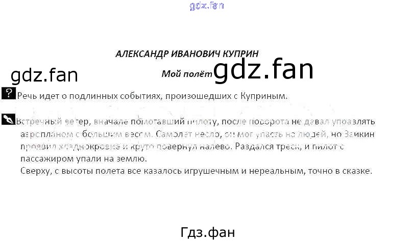 Проверка домашнего задания всегда занимает большое количество времени. На помощь приходит ГДЗ фан по Литературе пятого класса. Здесь собраны популярные ответы на Александр Иванович Куприн Мой полёт (стр. 58-59) Литература 5 класс рабочая тетрадь Курдюмова Т.Ф.