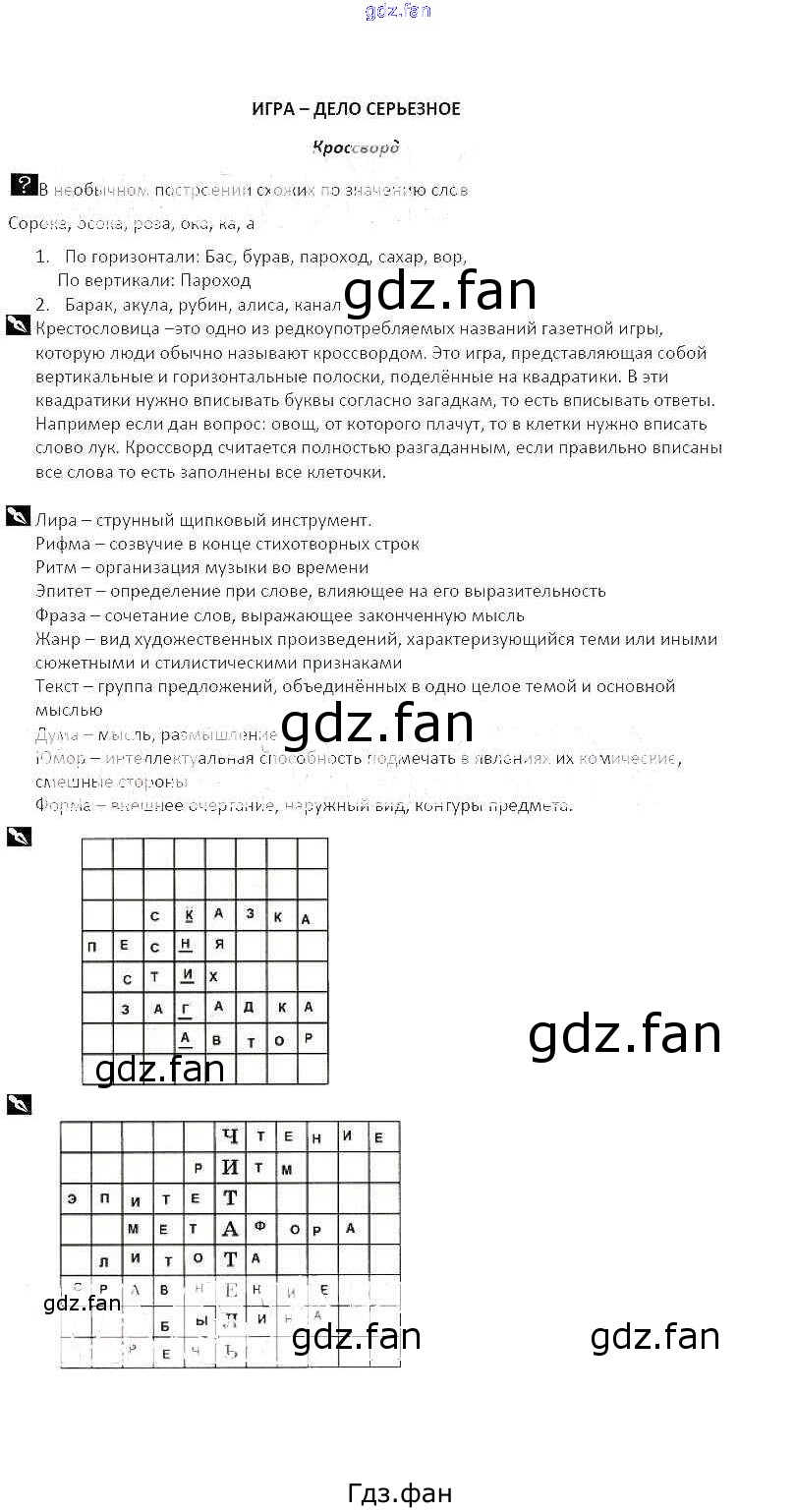Проверка домашнего задания всегда занимает большое количество времени. На помощь приходит ГДЗ фан по Литературе пятого класса. Здесь собраны популярные ответы на Кроссворд (стр. 105-108) Литература 5 класс рабочая тетрадь Курдюмова Т.Ф.