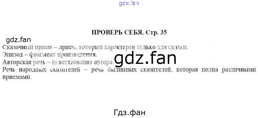 Проверка домашнего задания всегда занимает большое количество времени. На помощь приходит ГДЗ фан по Литературе пятого класса. Здесь собраны популярные ответы на Проверь себя (стр. 35) Литература 5 класс Москвин Г.В.