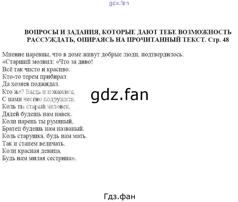Проверка домашнего задания всегда занимает большое количество времени. На помощь приходит ГДЗ фан по Литературе пятого класса. Здесь собраны популярные ответы на Вопросы и задания, которые дают тебе возможность рассуждать, опираясь на прочитанный текст (стр. 48) Литература 5 класс Москвин Г.В.