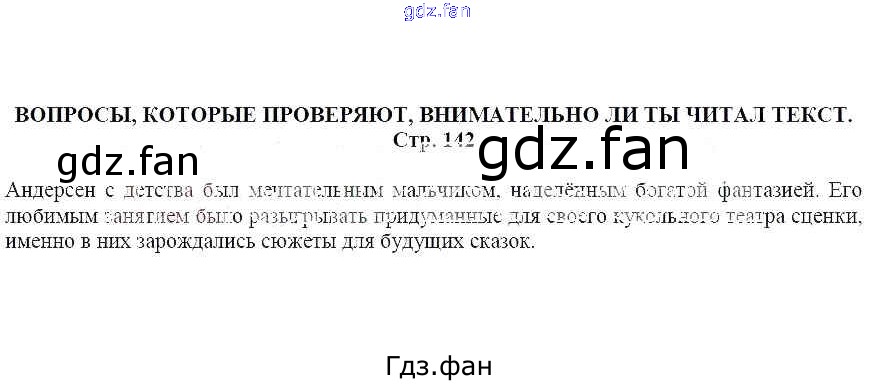 Проверка домашнего задания всегда занимает большое количество времени. На помощь приходит ГДЗ фан по Литературе пятого класса. Здесь собраны популярные ответы на Вопросы, которые проверяют, внимательно ли ты читал текст (стр. 142) Литература 5 класс Москвин Г.В.