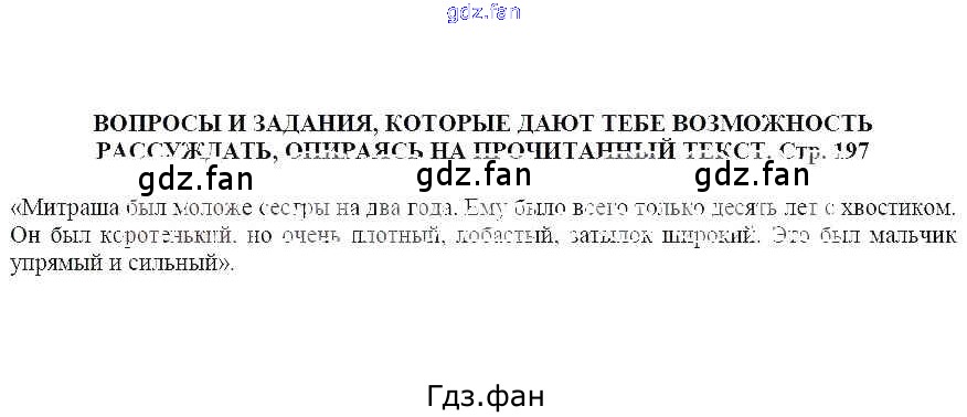 Проверка домашнего задания всегда занимает большое количество времени. На помощь приходит ГДЗ фан по Литературе пятого класса. Здесь собраны популярные ответы на Вопросы и задания, которые дают тебе возможность рассуждать, опираясь на прочитанный текст (стр. 197) Литература 5 класс Москвин Г.В.