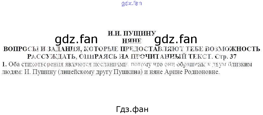 ГДЗ - онлайн ответы на 1 (стр. 37) Литература для 5 класса к Учебнику Алгоритм успеха Москвин 2020