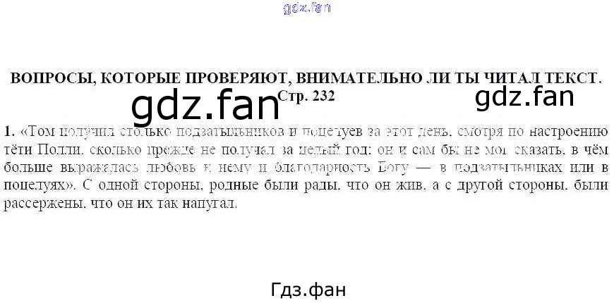 Проверка домашнего задания всегда занимает большое количество времени. На помощь приходит ГДЗ фан по Литературе пятого класса. Здесь собраны популярные ответы на 1 (стр. 232) Литература 5 класс Москвин Г.В.