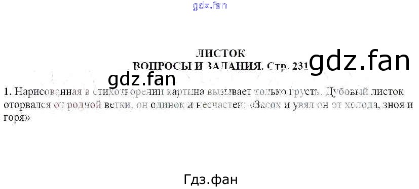 Проверка домашнего задания всегда занимает большое количество времени. На помощь приходит ГДЗ фан по Литературе шестого класса. Здесь собраны популярные ответы на 1 (стр. 231) Литература 6 класс Чертов В.Ф.