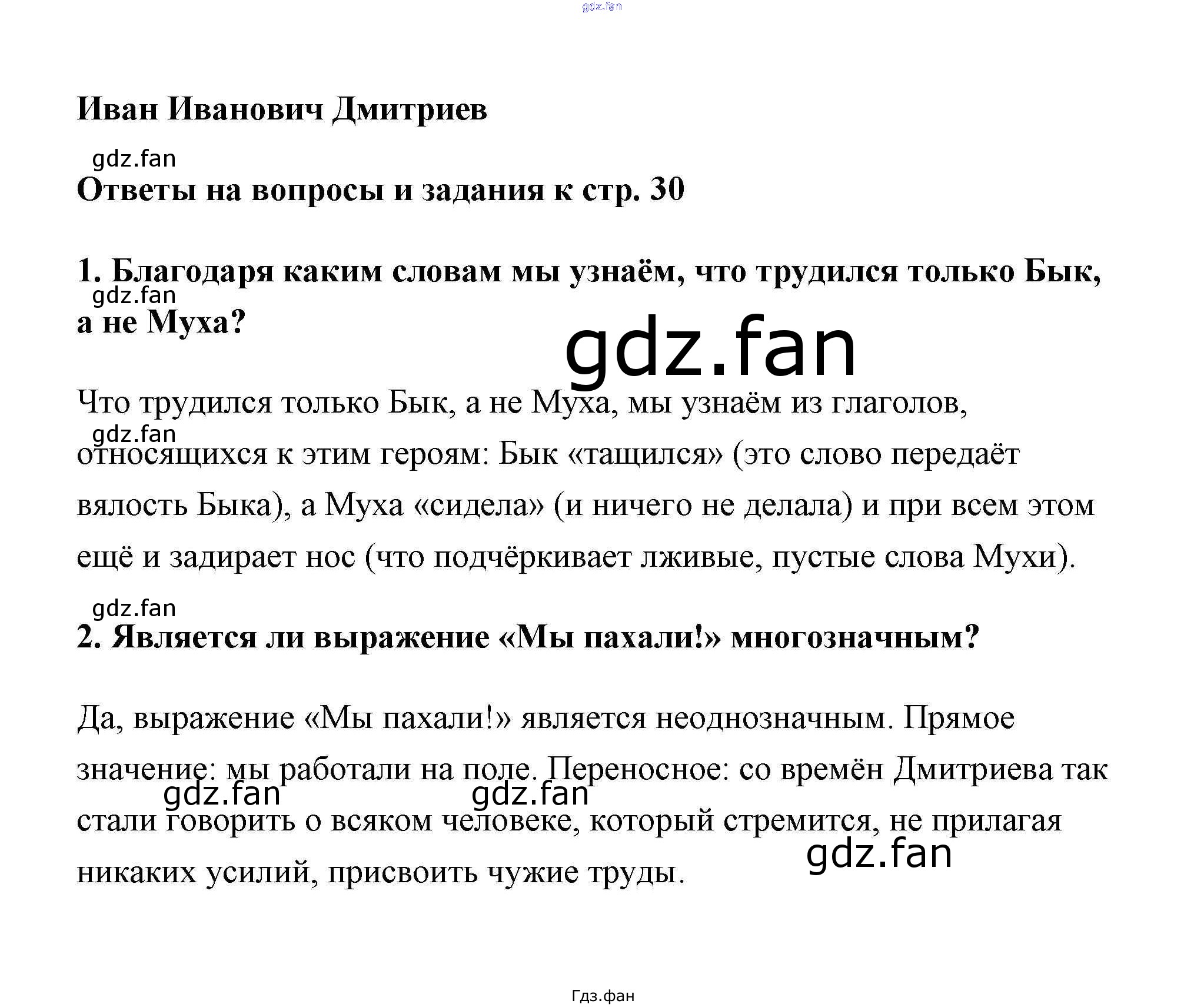 Проверка домашнего задания всегда занимает большое количество времени. На помощь приходит ГДЗ фан по Литературе шестого класса. Здесь собраны популярные ответы на страница 30 Литература 6 класс Коровина