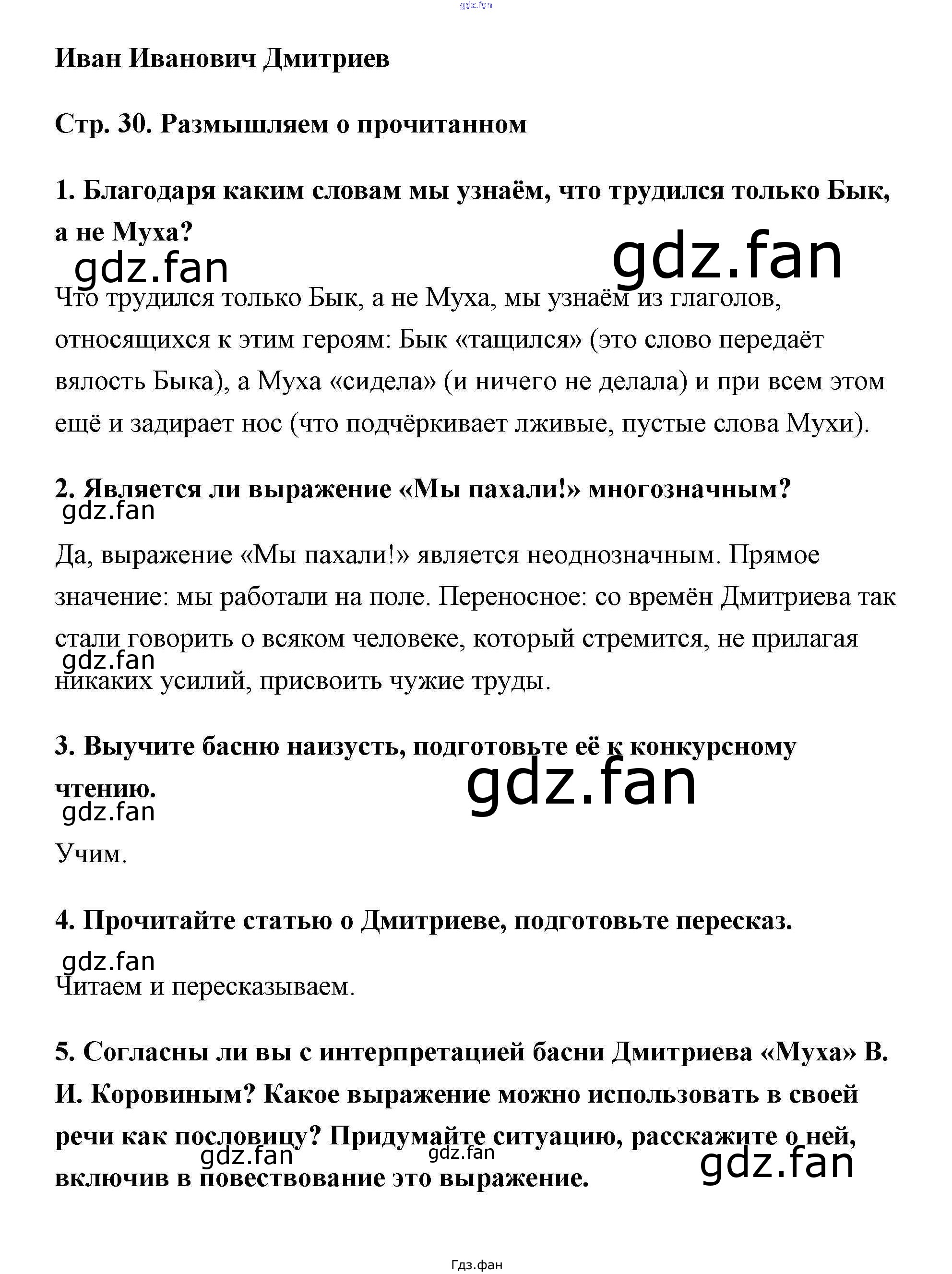 Проверка домашнего задания всегда занимает большое количество времени. На помощь приходит ГДЗ фан по Литературе шестого класса. Здесь собраны популярные ответы на страница 30 Литература 6 класс Коровина