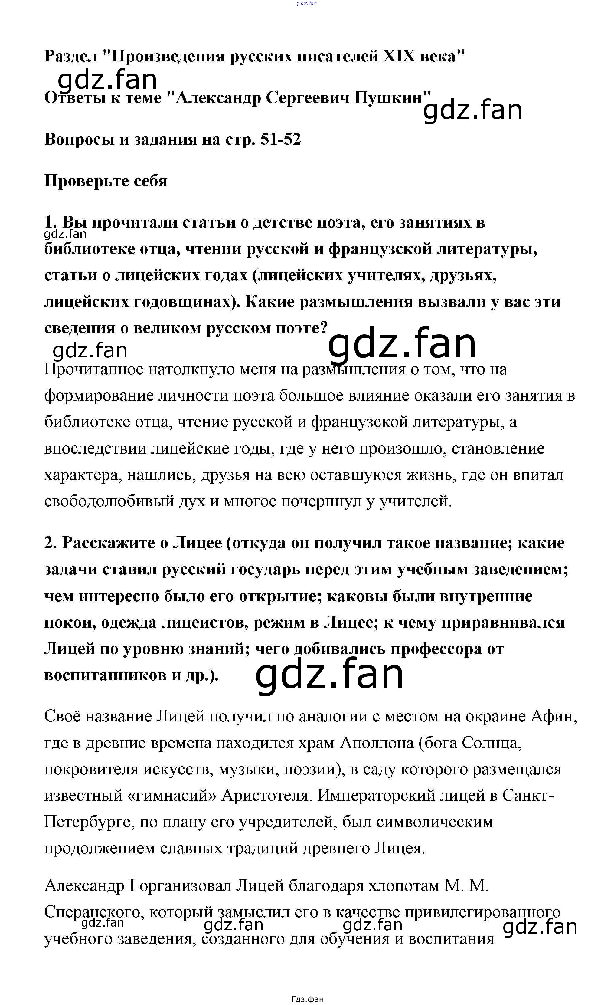 Проверка домашнего задания всегда занимает большое количество времени. На помощь приходит ГДЗ фан по Литературе шестого класса. Здесь собраны популярные ответы на страница 51-52 Литература 6 класс Коровина