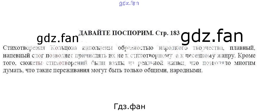 Проверка домашнего задания всегда занимает большое количество времени. На помощь приходит ГДЗ фан по Литературе шестого класса. Здесь собраны популярные ответы на Давайте поспорим (стр. 183) Литература 6 класс Ланин Б.А.