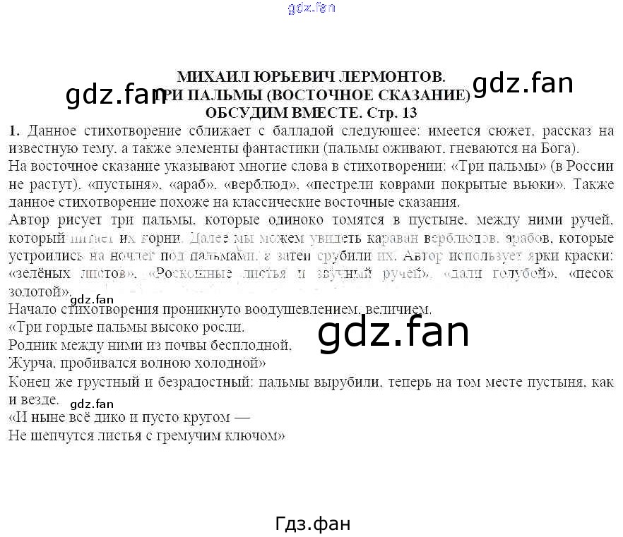 ГДЗ - онлайн ответы на 1 (стр. 13) Литература для 6 класса к Учебнику Алгоритм успеха Ланин, Устинова 2019
