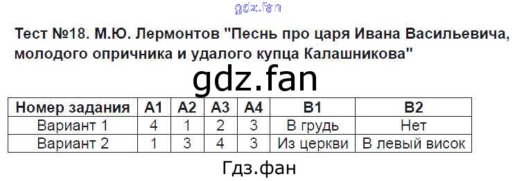 Проверка домашнего задания всегда занимает большое количество времени. На помощь приходит ГДЗ фан по Литературе восьмого класса. Здесь собраны популярные ответы на Тест 18. М.Ю. Лермонтов «Песнь про царя Ивана Васильевича, молодого опричника и удалого купца Калашникова» Литература 8 класс КИМ Зубова Е.Н.