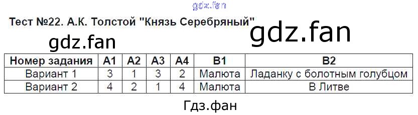 Проверка домашнего задания всегда занимает большое количество времени. На помощь приходит ГДЗ фан по Литературе восьмого класса. Здесь собраны популярные ответы на Тест 22. А.К. Толстой «Князь Серебряный» Литература 8 класс КИМ Зубова Е.Н.