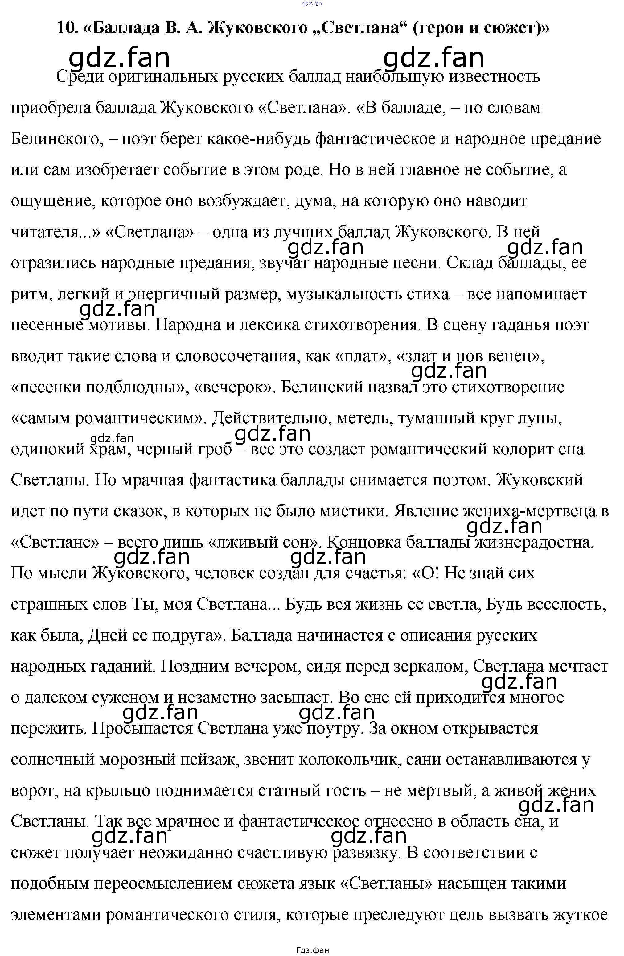 Проверка домашнего задания всегда занимает большое количество времени. На помощь приходит ГДЗ фан по Литературе девятого класса. Здесь собраны популярные ответы на 10. «Баллада В. А. Жуковского „Светлана“ (герои и сюжет)» Готовые сочинения по литературе 9 класс Еременко М. В.