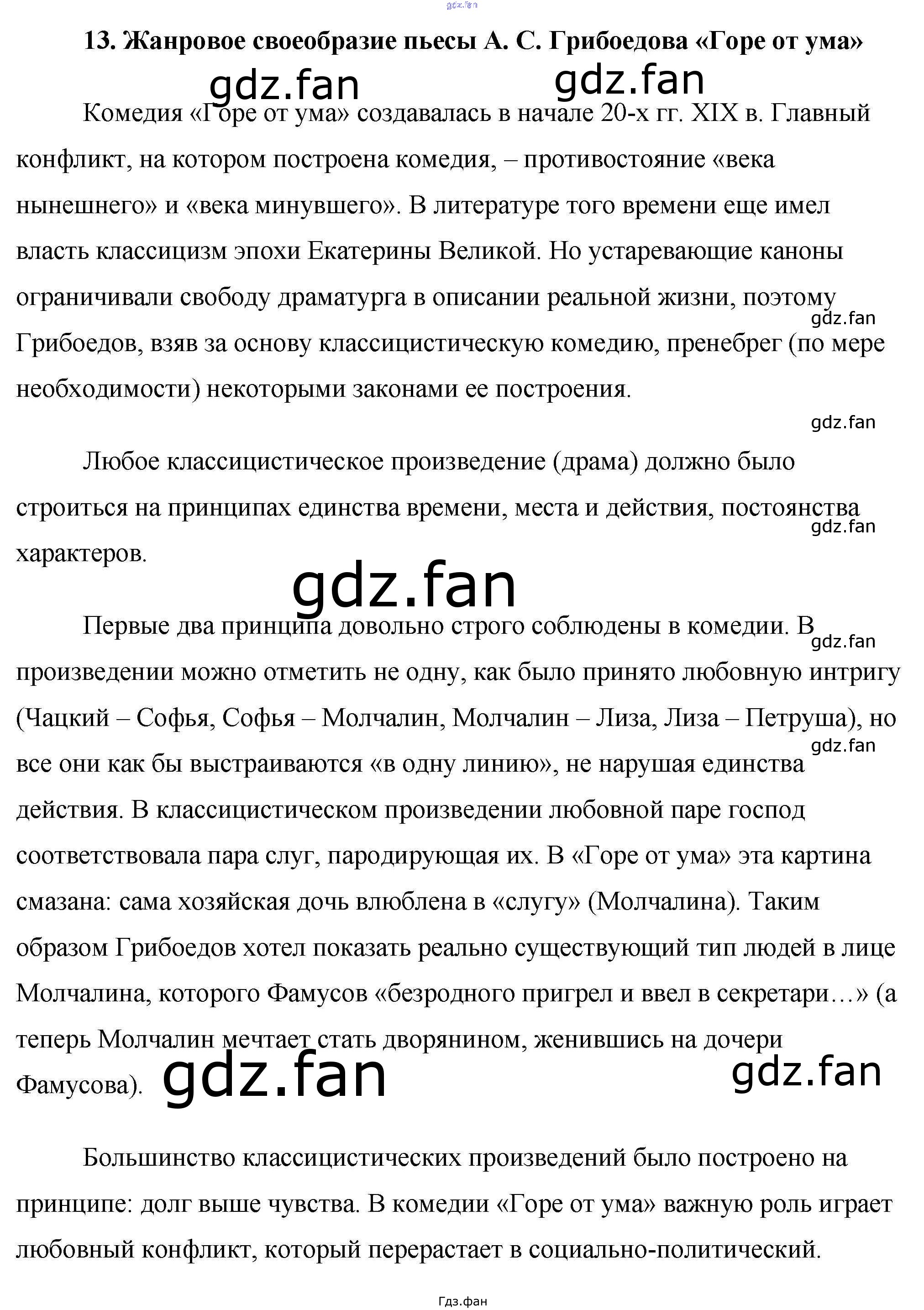 Проверка домашнего задания всегда занимает большое количество времени. На помощь приходит ГДЗ фан по Литературе девятого класса. Здесь собраны популярные ответы на 13. Жанровое своеобразие пьесы А. С. Грибоедова «Горе от ума» Готовые сочинения по литературе 9 класс Еременко М. В.