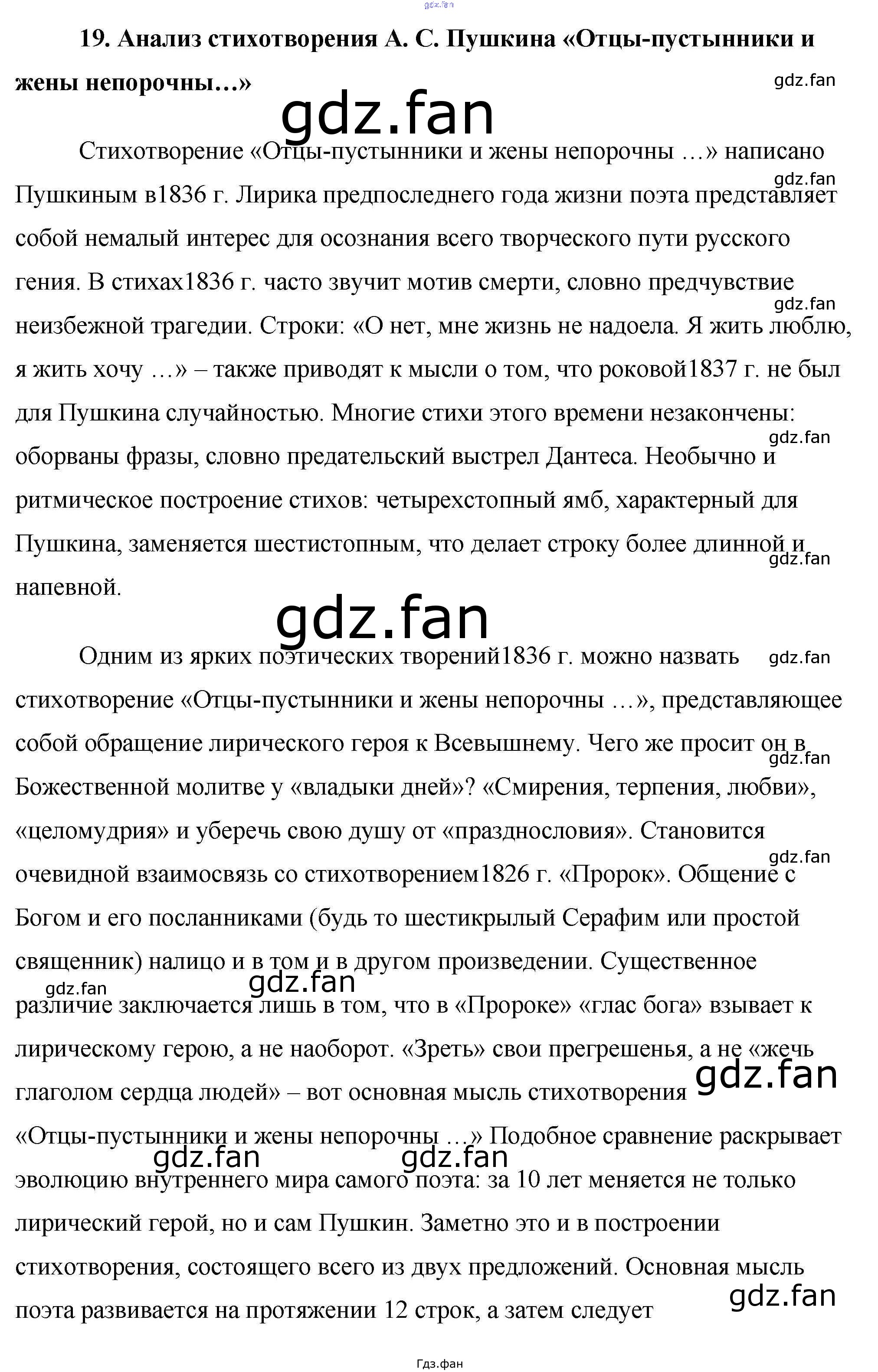 Проверка домашнего задания всегда занимает большое количество времени. На помощь приходит ГДЗ фан по Литературе девятого класса. Здесь собраны популярные ответы на 19. Анализ стихотворения А. С. Пушкина «Отцы пустынники и жены непорочны…» Готовые сочинения по литературе 9 класс Еременко М. В.