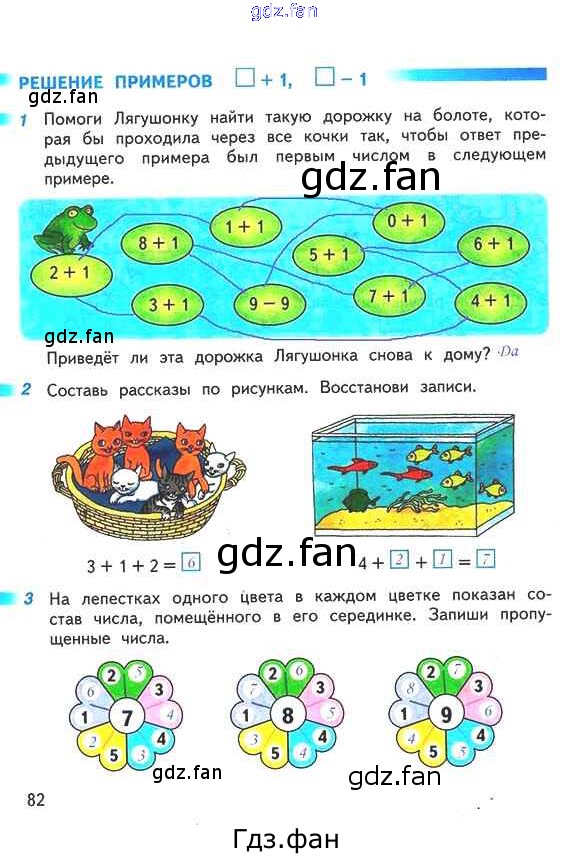 Проверка домашнего задания всегда занимает большое количество времени. На помощь приходит ГДЗ фан по Математике первого класса. Здесь собраны популярные ответы на 82 (Решение примеров □ + 1, □ - 1 № 1, 2, 3) Математика 1 класс рабочая тетрадь Дорофеев Г.В.