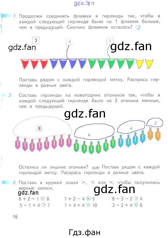 Проверка домашнего задания всегда занимает большое количество времени. На помощь приходит ГДЗ фан по Математике первого класса. Здесь собраны популярные ответы на 16 (№ 1, 2, 3) Математика 1 класс рабочая тетрадь Дорофеев Г.В.