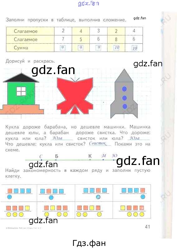 Проверка домашнего задания всегда занимает большое количество времени. На помощь приходит ГДЗ фан по Математике первого класса. Здесь собраны популярные ответы на 41 (№ 4, 5, 6, 7) Математика 1 класс рабочая тетрадь Дорофеев Г.В.