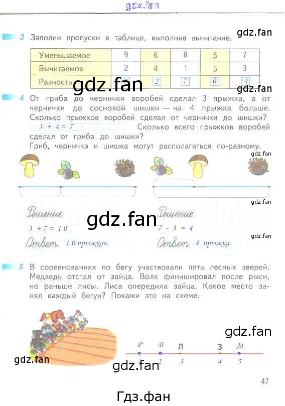 Проверка домашнего задания всегда занимает большое количество времени. На помощь приходит ГДЗ фан по Математике первого класса. Здесь собраны популярные ответы на 47 (№ 3, 4, 5) Математика 1 класс рабочая тетрадь Дорофеев Г.В.