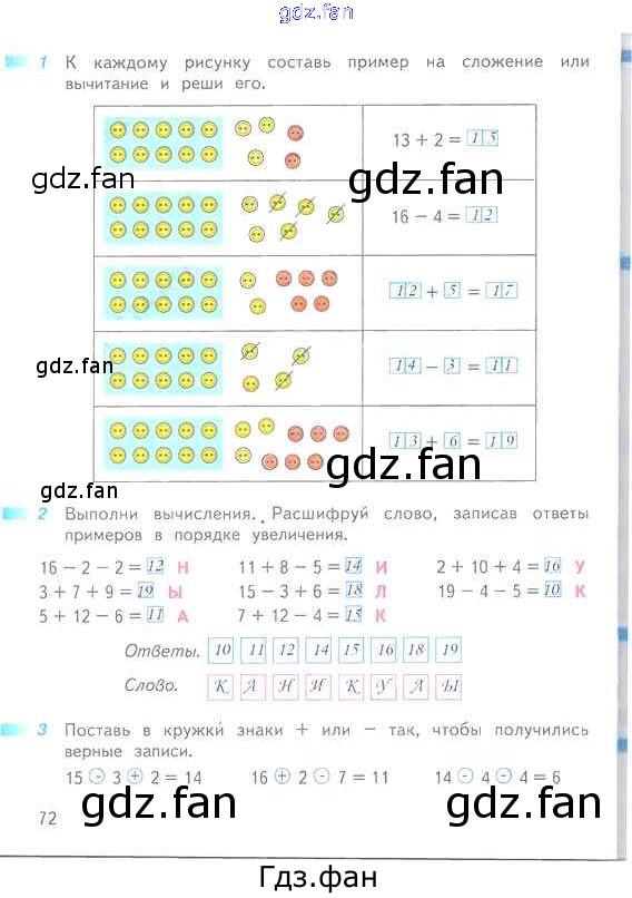 Проверка домашнего задания всегда занимает большое количество времени. На помощь приходит ГДЗ фан по Математике первого класса. Здесь собраны популярные ответы на 72 (№ 1, 2, 3) Математика 1 класс рабочая тетрадь Дорофеев Г.В.