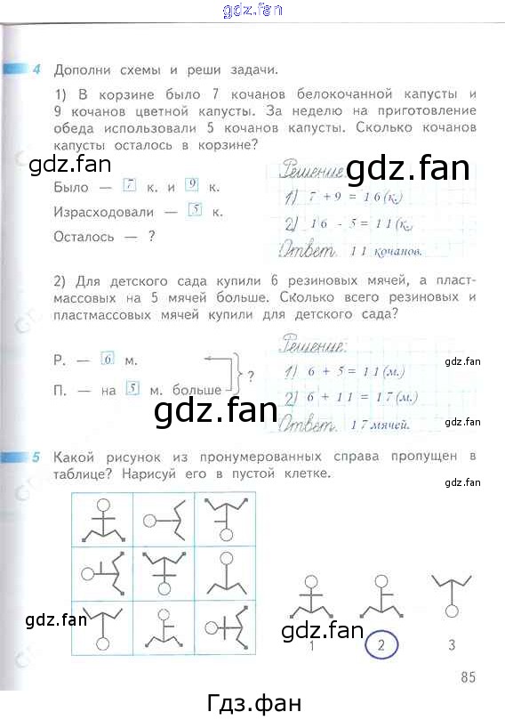 Проверка домашнего задания всегда занимает большое количество времени. На помощь приходит ГДЗ фан по Математике первого класса. Здесь собраны популярные ответы на 85 (№ 4, 5) Математика 1 класс рабочая тетрадь Дорофеев Г.В.