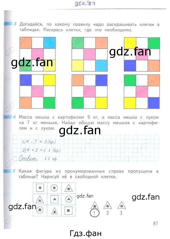 Проверка домашнего задания всегда занимает большое количество времени. На помощь приходит ГДЗ фан по Математике первого класса. Здесь собраны популярные ответы на 87 (№ 3, 4, 5) Математика 1 класс рабочая тетрадь Дорофеев Г.В.