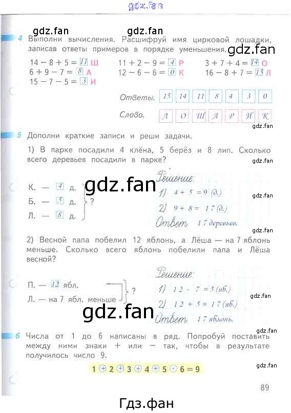 Проверка домашнего задания всегда занимает большое количество времени. На помощь приходит ГДЗ фан по Математике первого класса. Здесь собраны популярные ответы на 89 (№ 4, 5, 6) Математика 1 класс рабочая тетрадь Дорофеев Г.В.