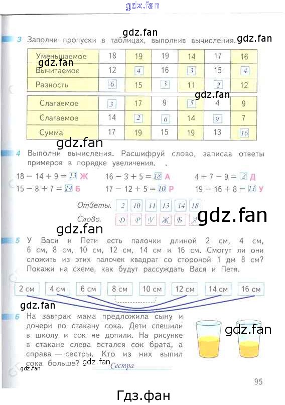 Проверка домашнего задания всегда занимает большое количество времени. На помощь приходит ГДЗ фан по Математике первого класса. Здесь собраны популярные ответы на 95 (№ 3, 4, 5, 6) Математика 1 класс рабочая тетрадь Дорофеев Г.В.