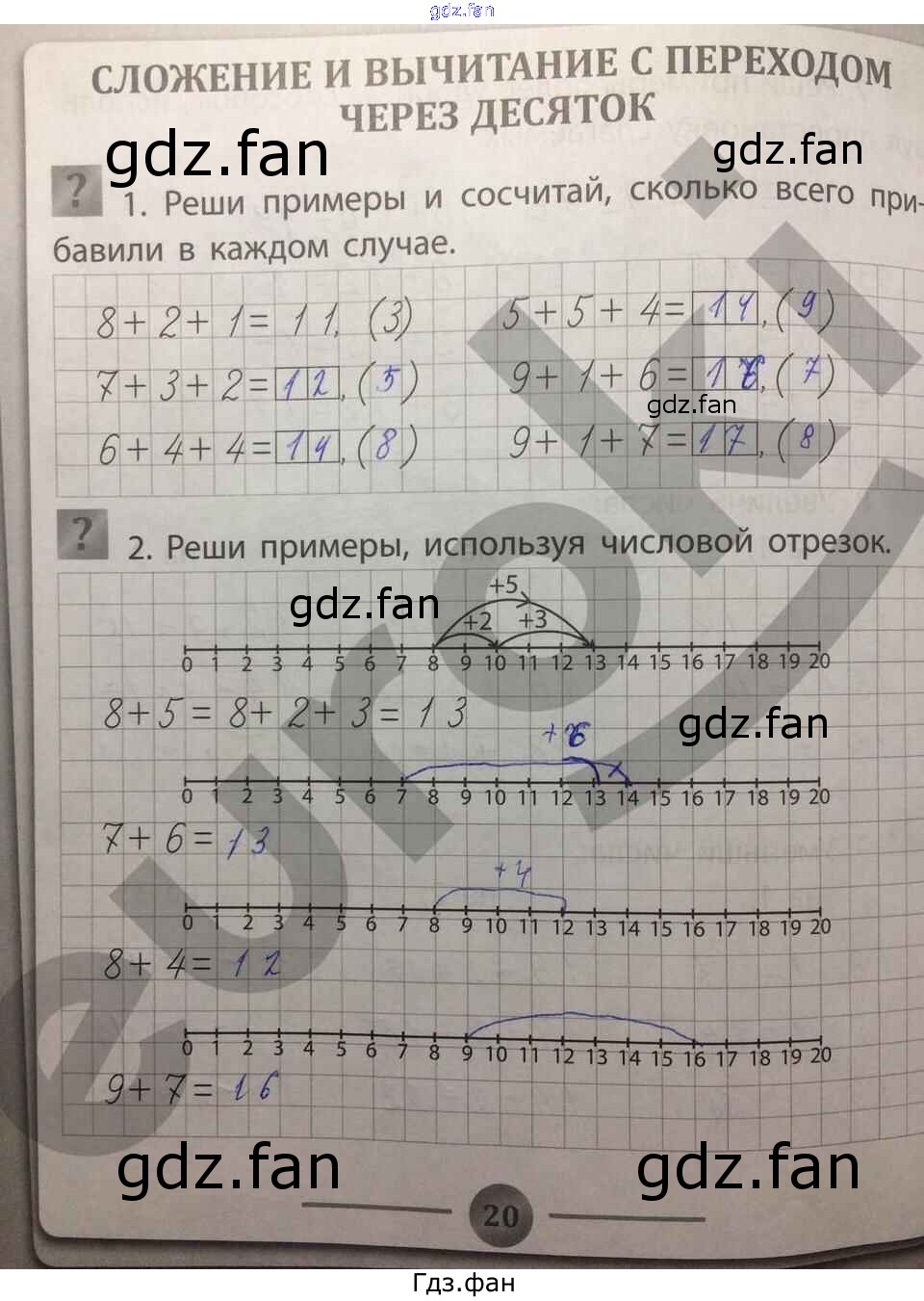 Проверка домашнего задания всегда занимает большое количество времени. На помощь приходит ГДЗ фан по Математике первого класса. Здесь собраны популярные ответы на 20 (Сложение и вычитание с переходом через десяток № 1, 2) Математика 1 класс тренажёр Губка Н.С.