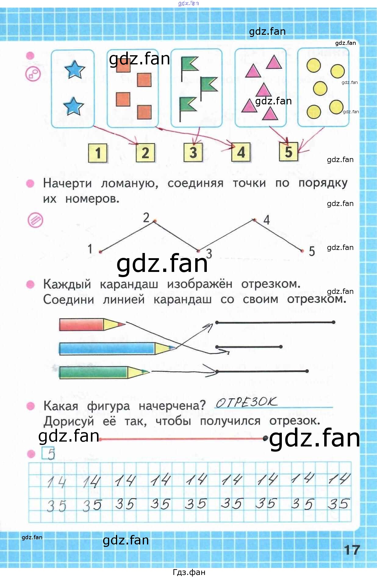 Проверка домашнего задания всегда занимает большое количество времени. На помощь приходит ГДЗ фан по Математике первого класса. Здесь собраны популярные ответы на 17 (ломанная линия) Математика 1 класс рабочая тетрадь Моро М.И.