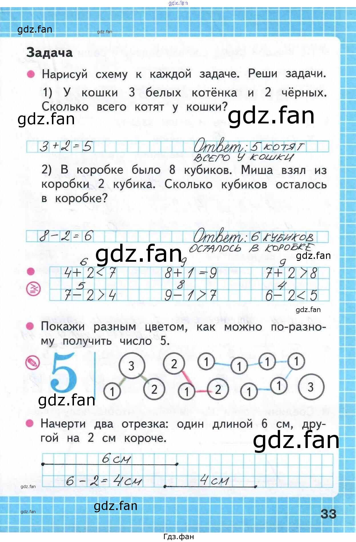Проверка домашнего задания всегда занимает большое количество времени. На помощь приходит ГДЗ фан по Математике первого класса. Здесь собраны популярные ответы на 33 (задача) Математика 1 класс рабочая тетрадь Моро М.И.