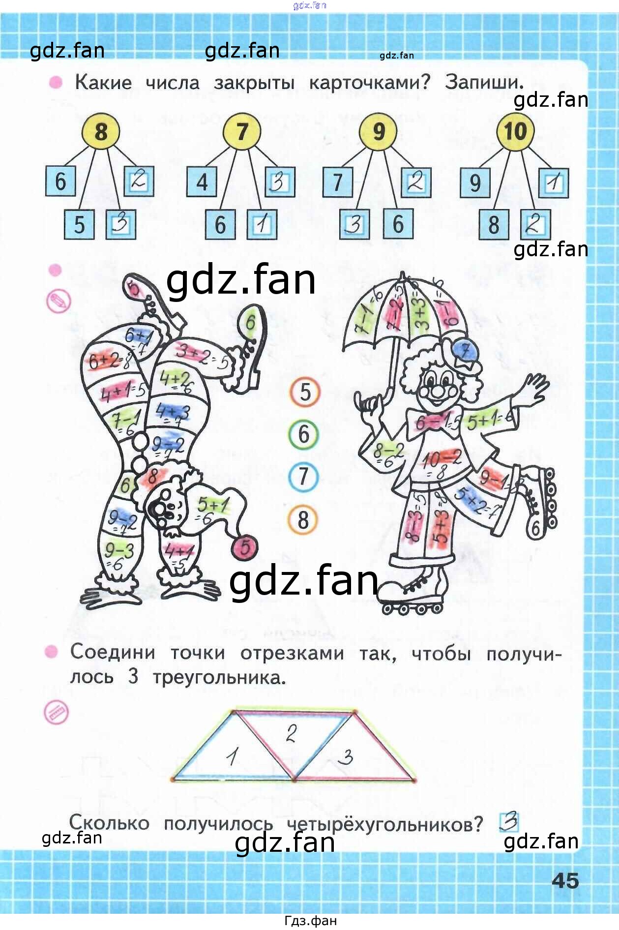 Проверка домашнего задания всегда занимает большое количество времени. На помощь приходит ГДЗ фан по Математике первого класса. Здесь собраны популярные ответы на 45 (задача) Математика 1 класс рабочая тетрадь Моро М.И.