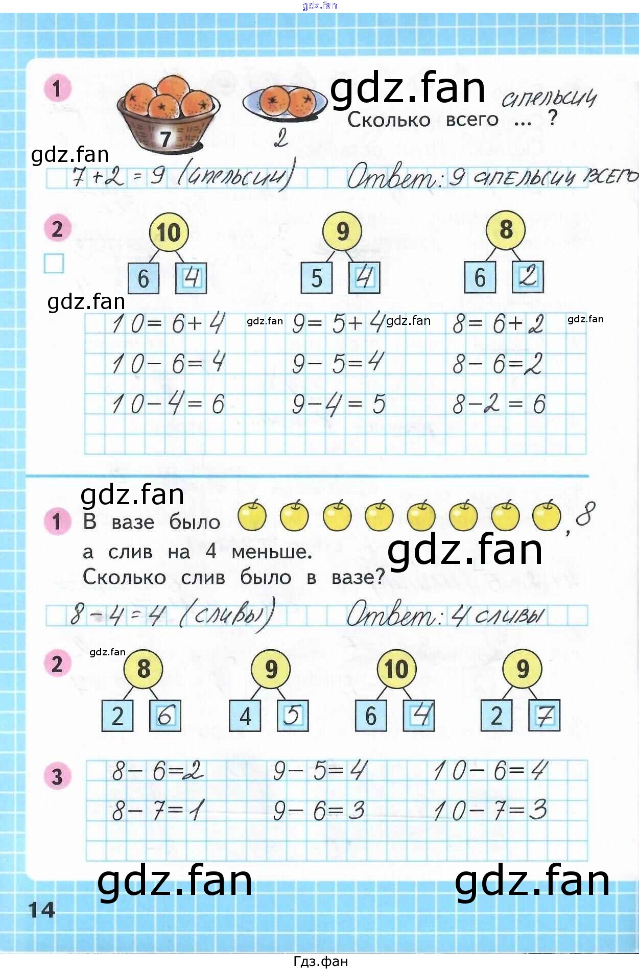 Проверка домашнего задания всегда занимает большое количество времени. На помощь приходит ГДЗ фан по Математике первого класса. Здесь собраны популярные ответы на 14 (задания 1, 2, 1, 2, 3) Математика 1 класс рабочая тетрадь Моро М.И.