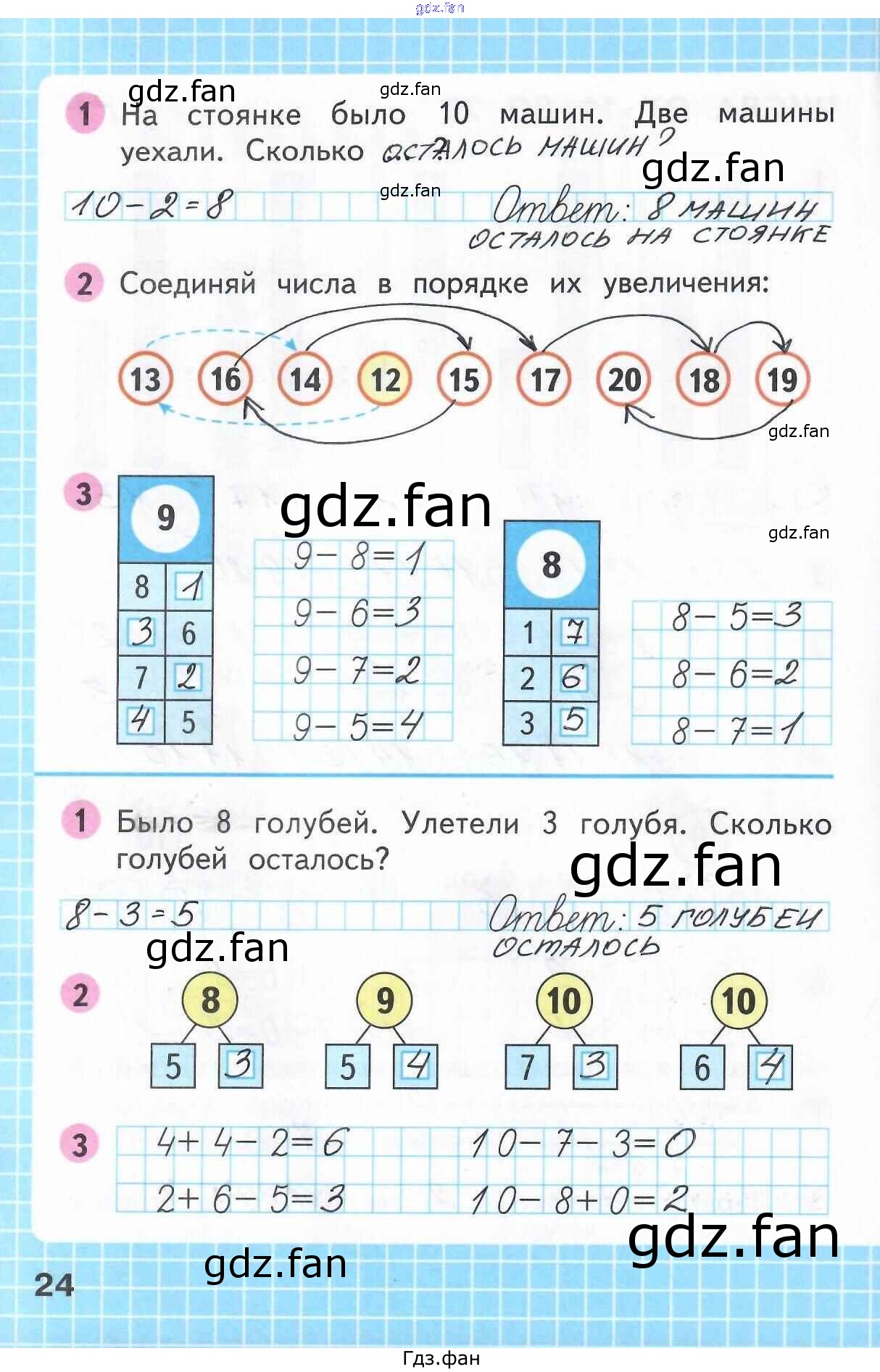 Проверка домашнего задания всегда занимает большое количество времени. На помощь приходит ГДЗ фан по Математике первого класса. Здесь собраны популярные ответы на 24 (задания 1, 2, 3, 1, 2, 3) Математика 1 класс рабочая тетрадь Моро М.И.