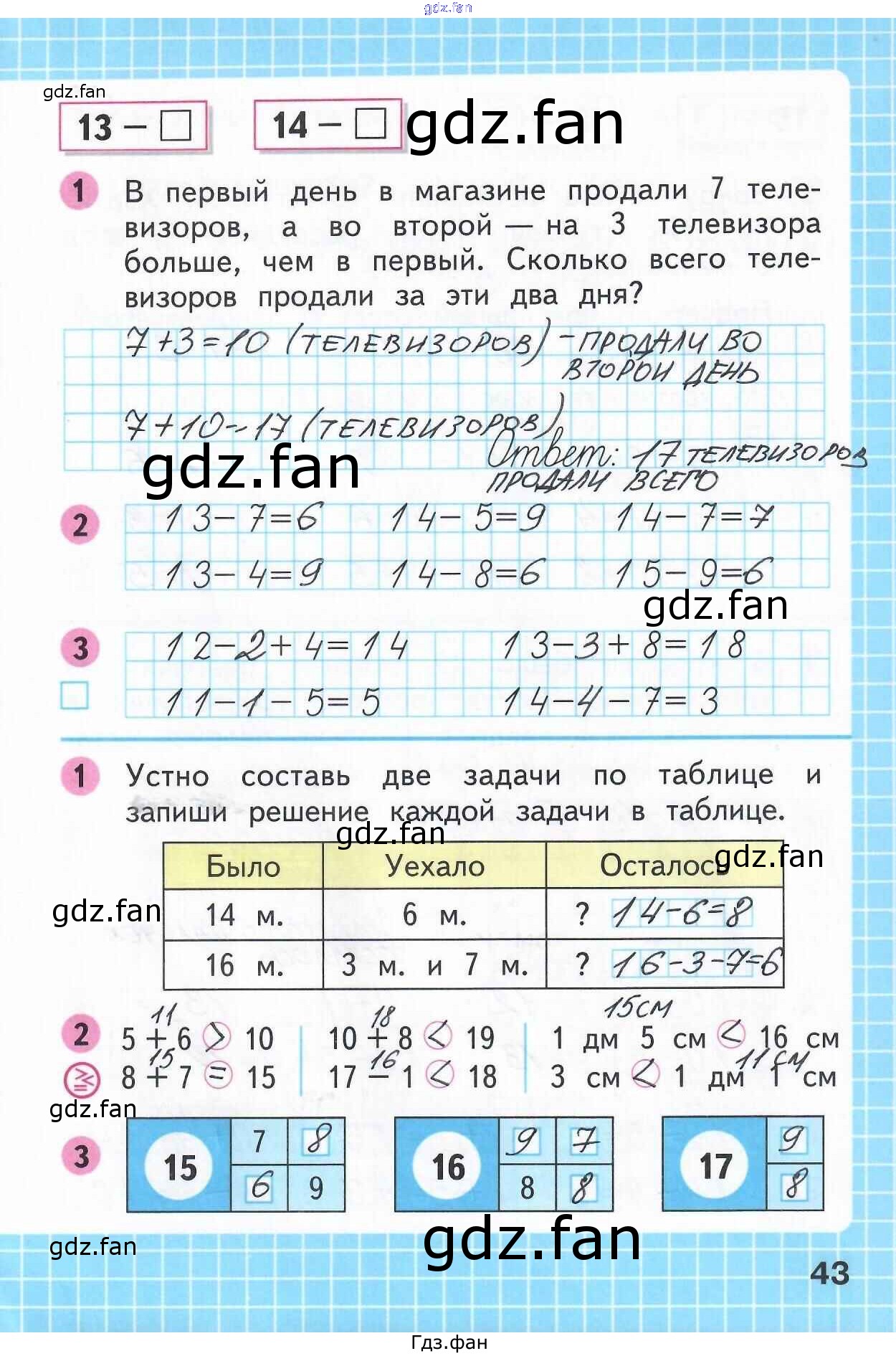 Проверка домашнего задания всегда занимает большое количество времени. На помощь приходит ГДЗ фан по Математике первого класса. Здесь собраны популярные ответы на 43 (задания 1, 2, 3, 1, 2, 3) Математика 1 класс рабочая тетрадь Моро М.И.