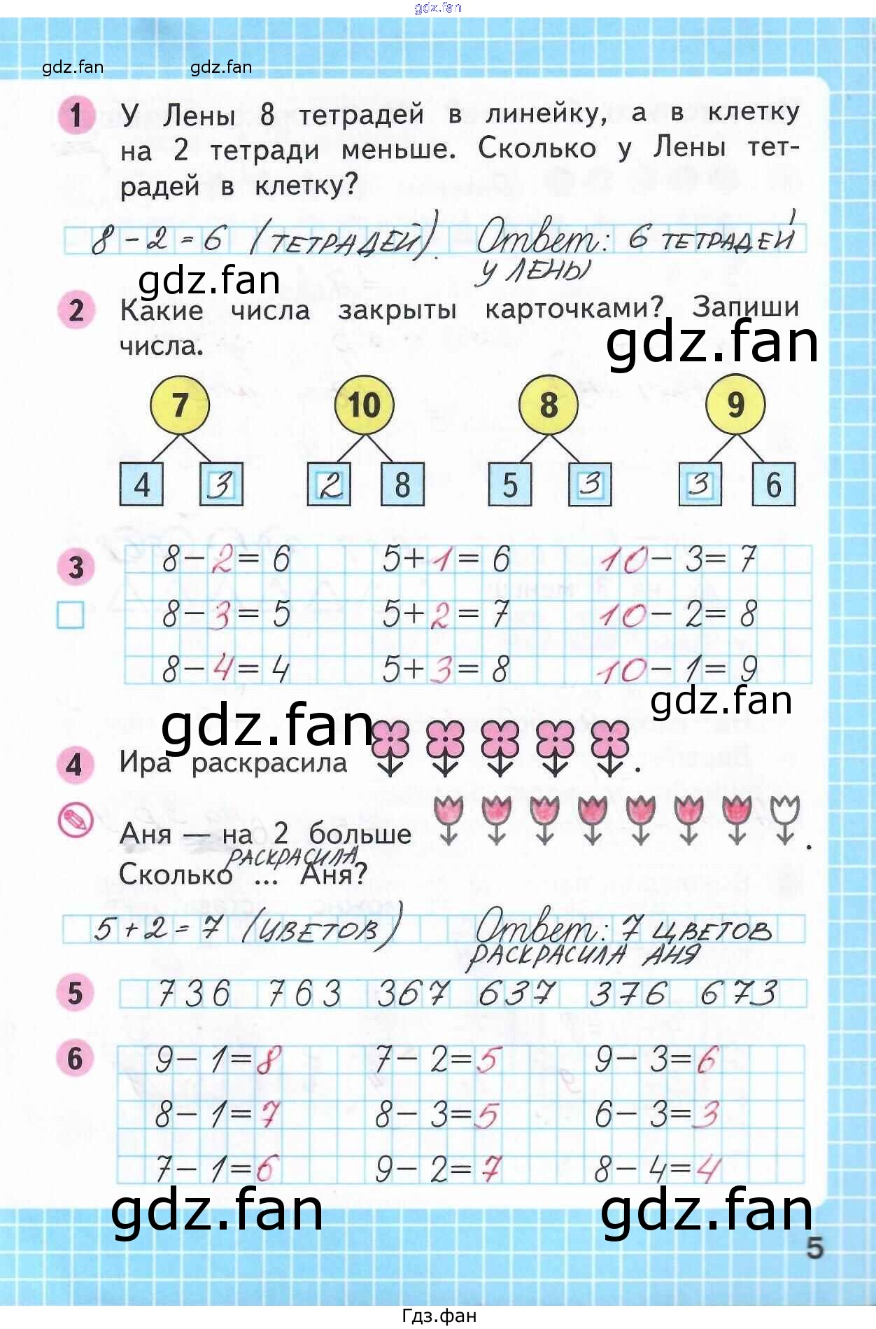 Проверка домашнего задания всегда занимает большое количество времени. На помощь приходит ГДЗ фан по Математике первого класса. Здесь собраны популярные ответы на 5 (задания 1, 2, 3, 4, 5, 6) Математика 1 класс рабочая тетрадь Моро М.И.